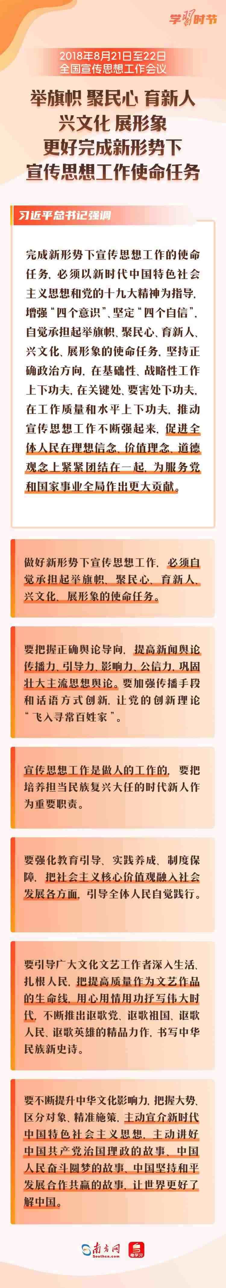 宣傳思想文化工作事關(guān)黨的前途命運(yùn),事關(guān)國家長治久安,事關(guān)民族凝聚力和向心力,是一項(xiàng)極端重要的工作。黨的十八大以來,宣傳思想文化工作之所以取得歷史性成就,最根本就在于有習(xí)近平總書記領(lǐng)航掌舵,有習(xí)近平新時(shí)代中國特色社會主義思想科學(xué)指引。讓我們一同回顧剛剛召開的全國宣傳思想文化工作會議,以及2018年、2013年召開的兩次全國宣傳思想工作會議,看看總書記通過這三次會議,為宣傳思想文化工作劃出了哪些重點(diǎn)。