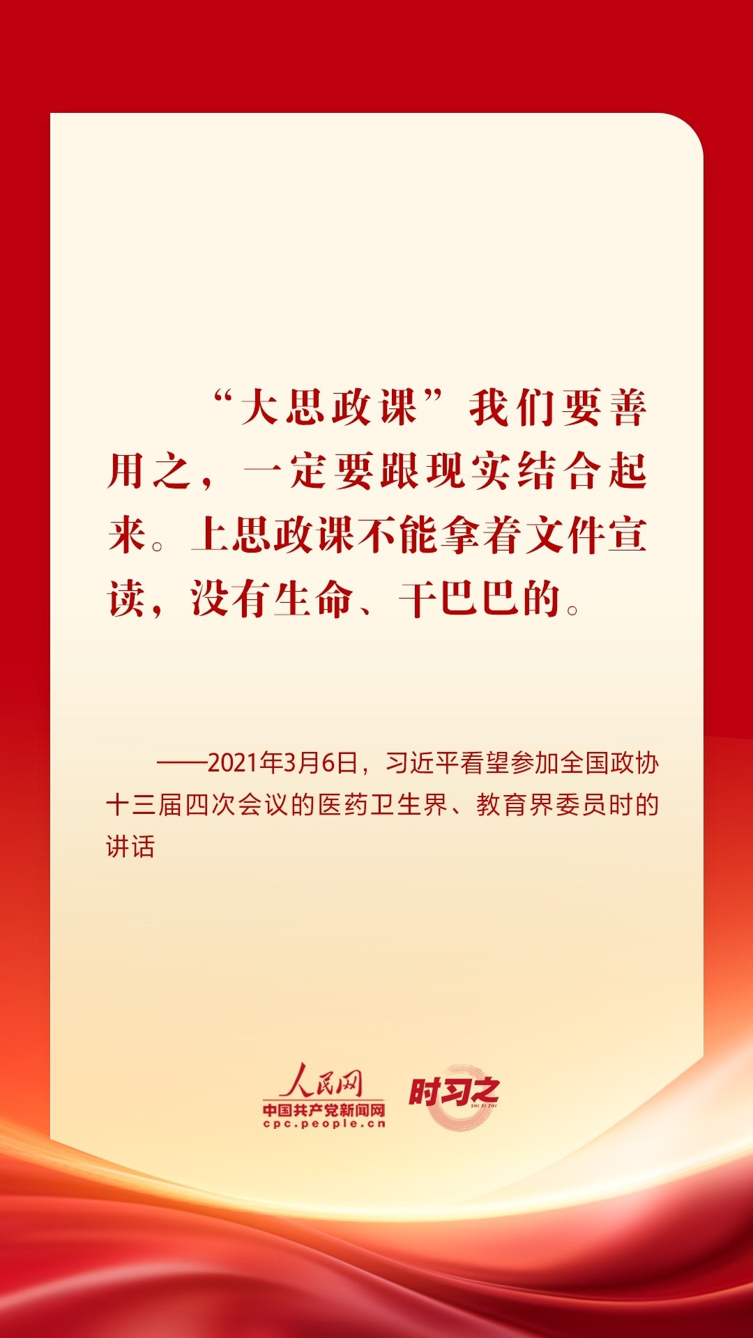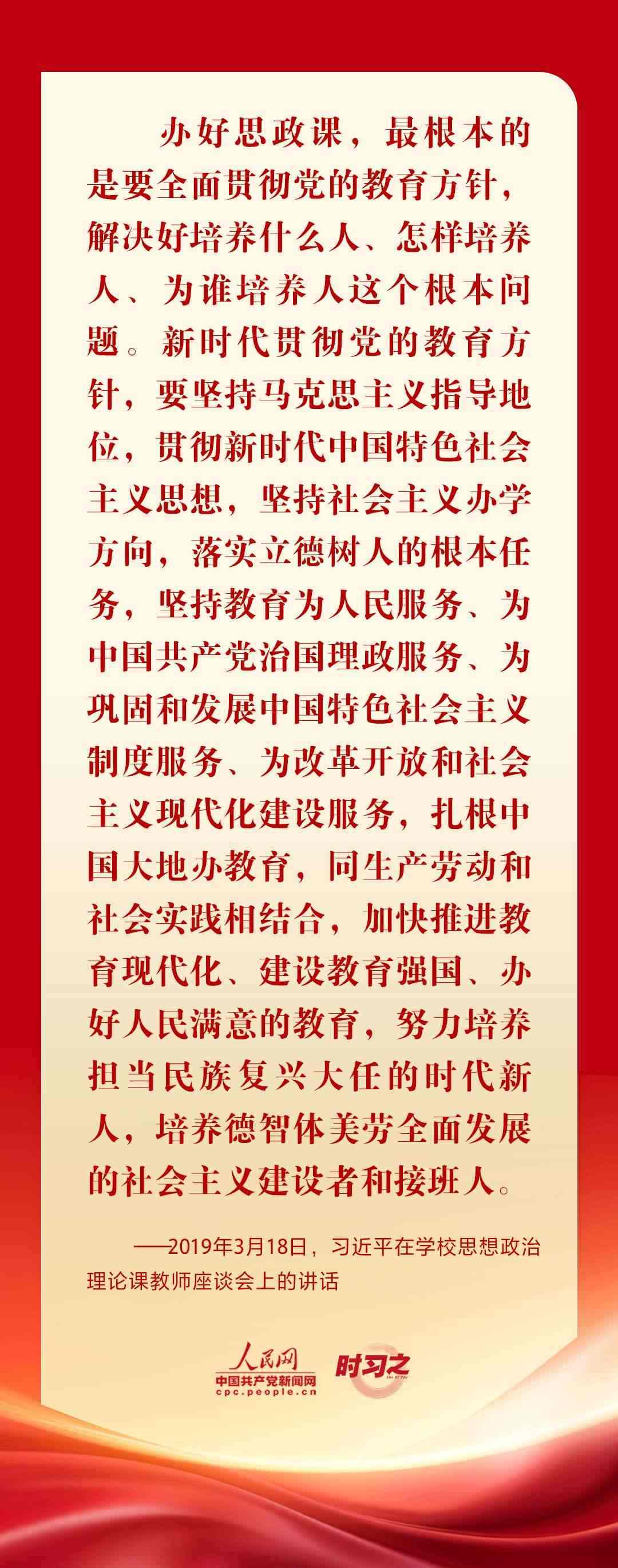 “思政課是落實(shí)立德樹(shù)人根本任務(wù)的關(guān)鍵課程,思政課作用不可替代,思政課教師隊(duì)伍責(zé)任重大?!秉h的十八大以來(lái),從召開(kāi)全國(guó)高校思想政治工作會(huì)議、全國(guó)教育大會(huì)、學(xué)校思想政治理論課教師座談會(huì),到多次赴學(xué)校考察和師生交流談心,習(xí)近平總書記圍繞思政課建設(shè)作出一系列重要論述,為辦好思政課提供根本遵循。