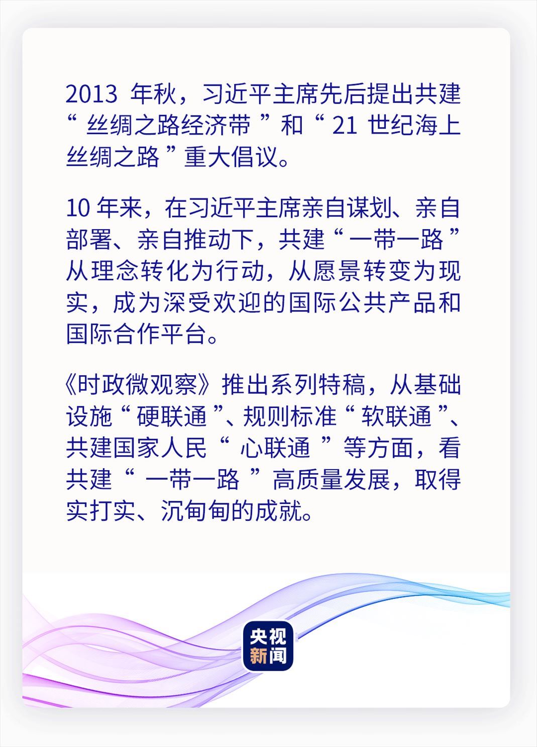 10年來(lái),中國(guó)與共建國(guó)家以基礎(chǔ)設(shè)施“硬聯(lián)通”為重要方向,攜手前行。在“鋼鐵駝隊(duì)”的汽笛聲里、在跨海大橋上的車流中、在“空中絲綢之路”的萬(wàn)米高空、在“數(shù)字絲綢之路”的“云端”……一條條幸福路、繁榮路,鋪就一幅共建“一帶一路”的壯闊畫卷。