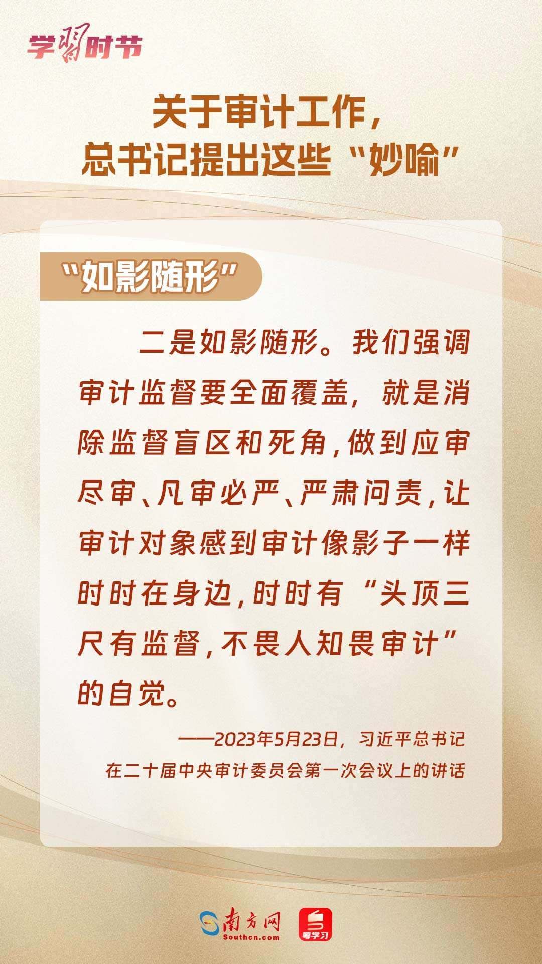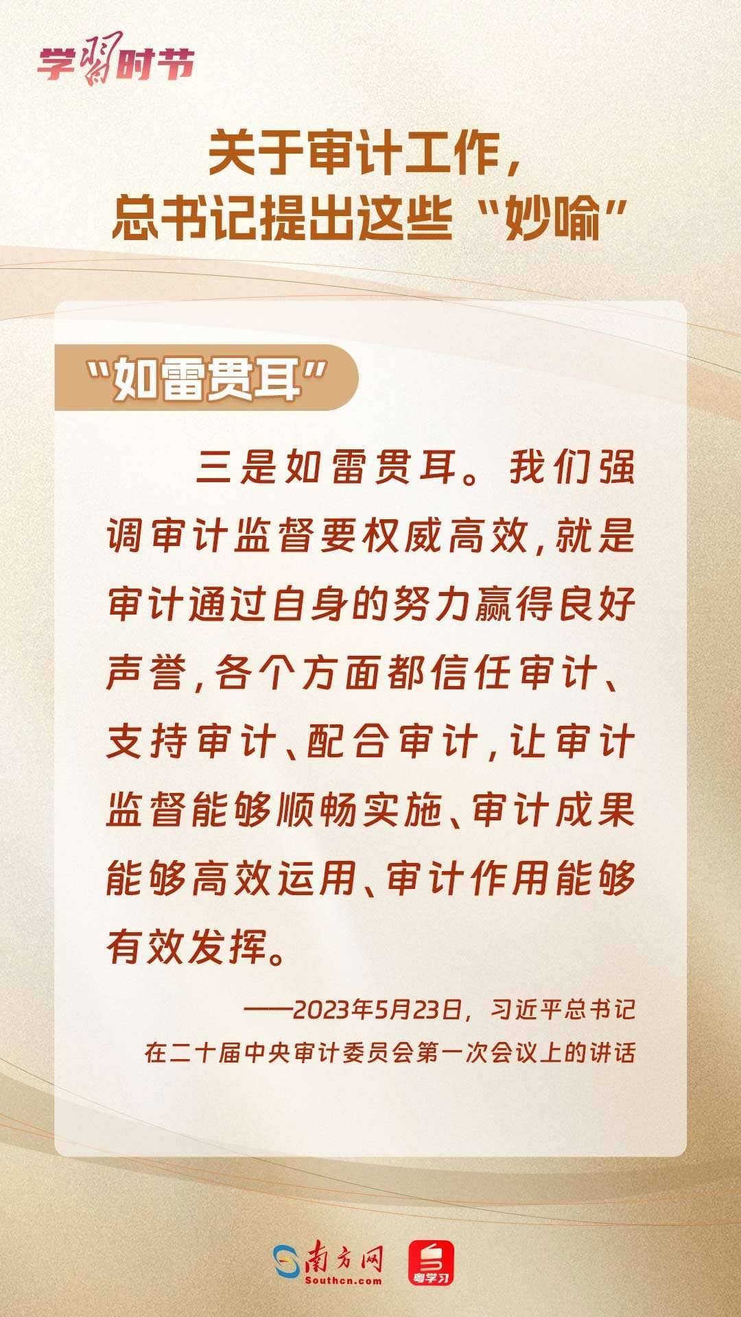 11月1日出版的《求是》雜志刊登了習(xí)近平總書記在二十屆中央審計委員會第一次會議上的講話全文。總書記在重要講話中“妙喻”審計工作,讓我們一同學(xué)習(xí)。