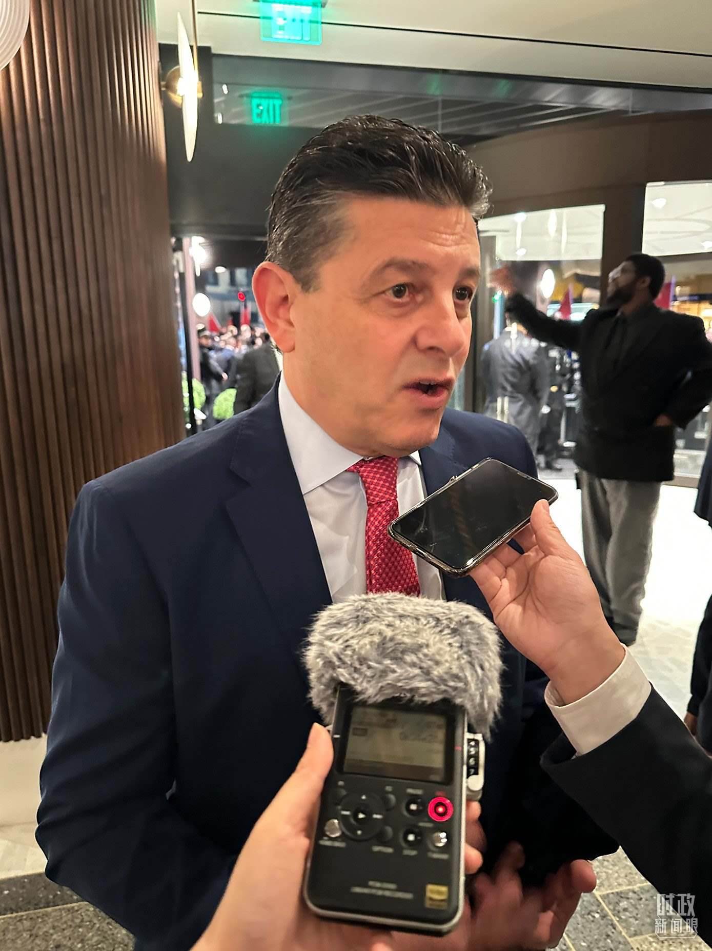 正在接受采訪的貝隆。(總臺國廣記者時冉拍攝)