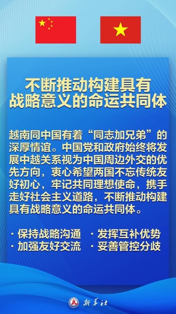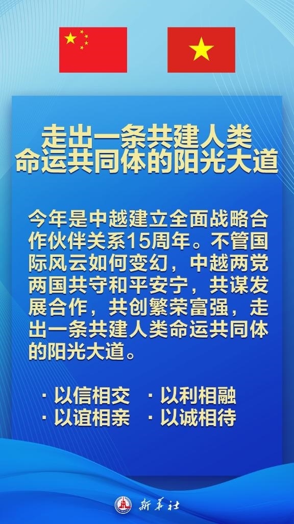 新華社北京12月12日電 12月12日,在赴河內(nèi)對(duì)越南進(jìn)行國(guó)事訪問之際,中共中央總書記、國(guó)家主席習(xí)近平在越南《人民報(bào)》發(fā)表題為《構(gòu)建具有戰(zhàn)略意義的中越命運(yùn)共同體 開啟攜手邁向現(xiàn)代化的新篇章》的署名文章,為打造中越命運(yùn)共同體擘畫新愿景。