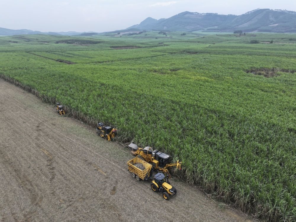 不遠處,幾臺甘蔗收割機隆隆作響。當得知大型甘蔗收割機一天能收割180噸至200噸甘蔗,相當于180個人工的工作量,總書記連連稱贊。