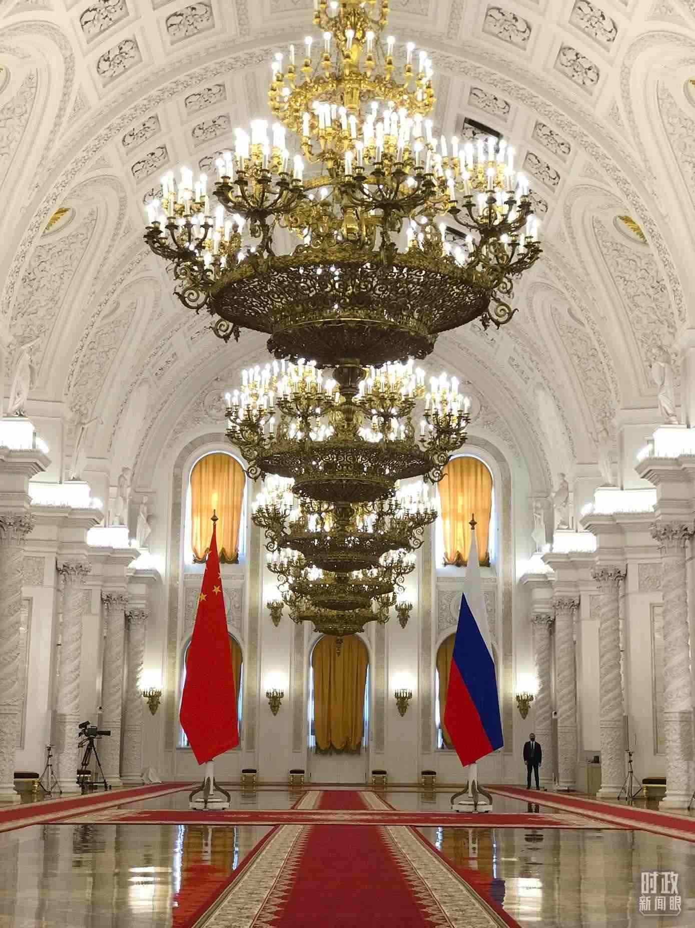 △ 2023年3月,應(yīng)俄羅斯總統(tǒng)普京邀請(qǐng),習(xí)近平主席對(duì)俄羅斯進(jìn)行國事訪問。圖為克里姆林宮喬治大廳,習(xí)主席在這里同普京總統(tǒng)握手合影。(總臺(tái)央視記者石偉明拍攝)