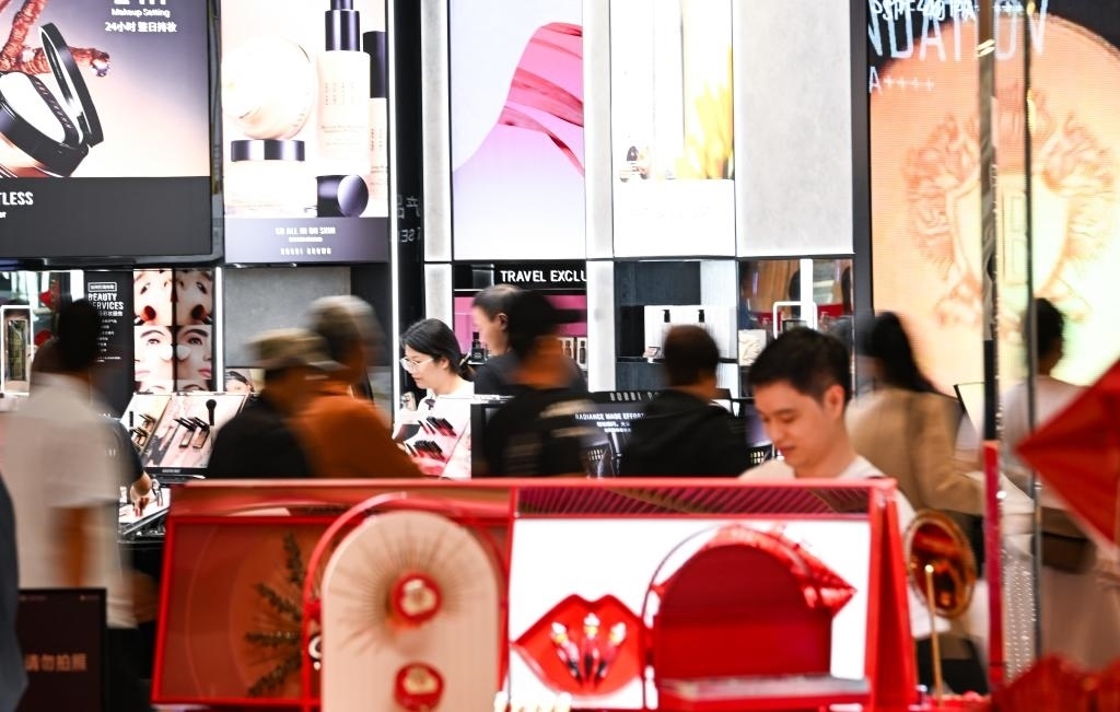 2023年10月28日,消費者在位于海南省海口市的??趪H免稅城內(nèi)購物。新華社記者楊冠宇 攝
