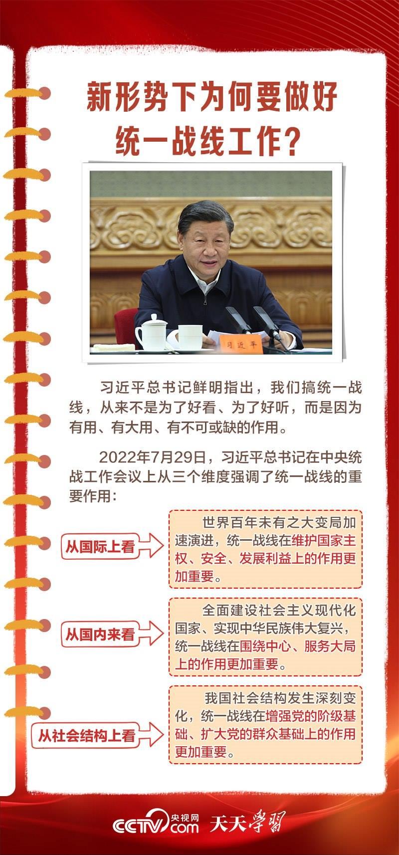 1月16日出版的第2期《求是》雜志發(fā)表了習(xí)近平總書記的重要文章《完整、準(zhǔn)確、全面貫徹落實(shí)關(guān)于做好新時(shí)代黨的統(tǒng)一戰(zhàn)線工作的重要思想》,該文是習(xí)近平總書記2022年7月在中央統(tǒng)戰(zhàn)工作會(huì)議上講話的一部分。文章指出,統(tǒng)一戰(zhàn)線是黨克敵制勝、執(zhí)政興國(guó)的重要法寶,是團(tuán)結(jié)海內(nèi)外全體中華兒女實(shí)現(xiàn)中華民族偉大復(fù)興的重要法寶,必須長(zhǎng)期堅(jiān)持。
