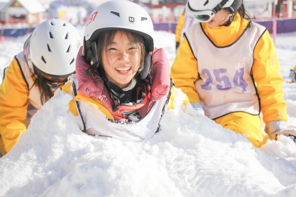 孩子們在西嶺雪山滑雪場玩雪。(呂輝 攝)