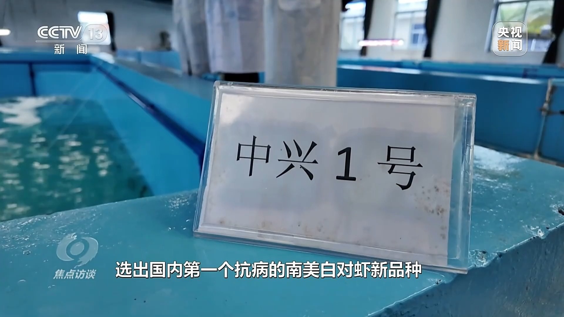 陳奕彬:“基地聯(lián)合中山大學(xué),從多個(gè)區(qū)域引進(jìn)多個(gè)種群,組成一個(gè)選育的基礎(chǔ)群體,又開始經(jīng)過(guò)一代群體選育,加上五代的家系選育,歷經(jīng)大概八代、十年的時(shí)間,終于在2011年的時(shí)候選出國(guó)內(nèi)第一個(gè)抗病的南美白對(duì)蝦新品種:中興1號(hào)。”