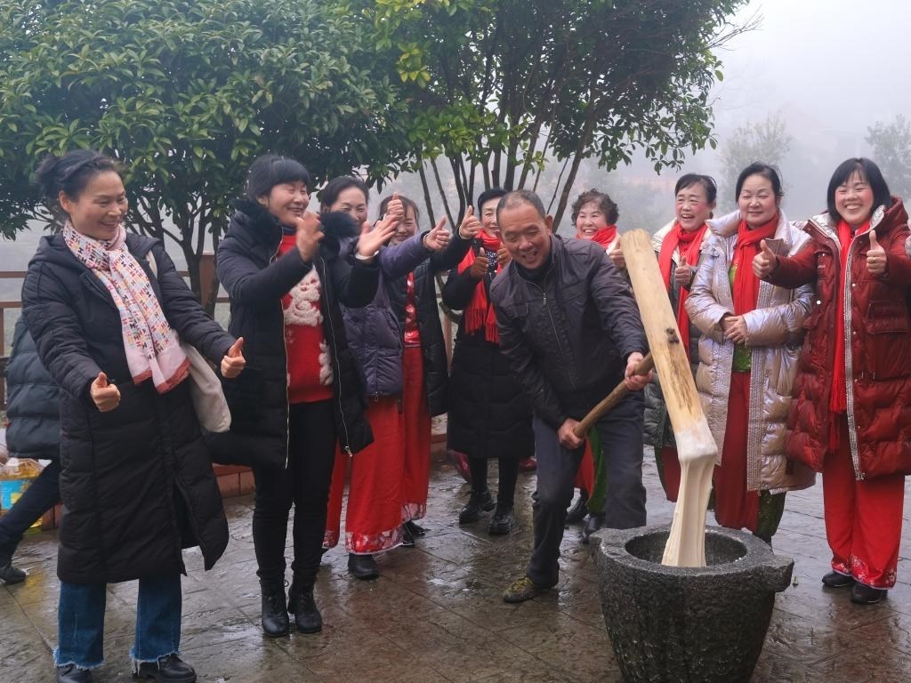 2月2日,神山村群眾一同打糍粑準(zhǔn)備迎接南方小年。(受訪者供圖)