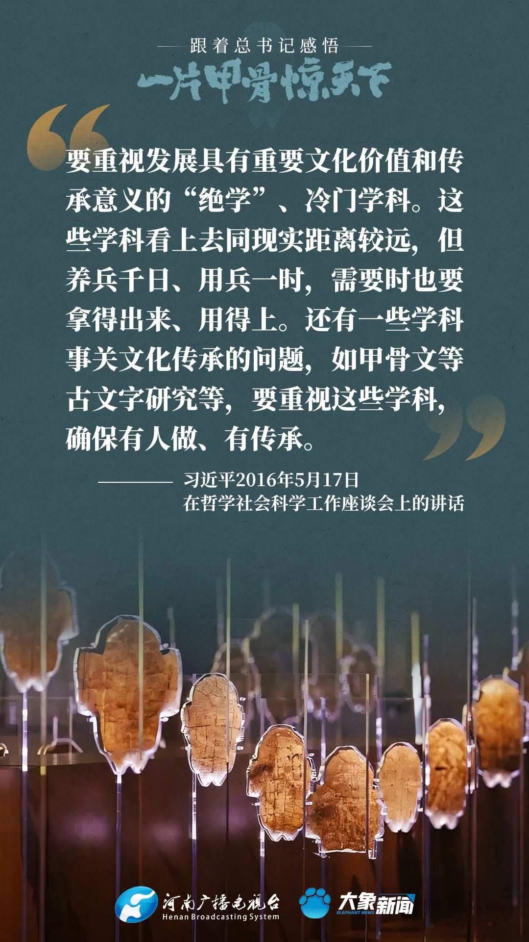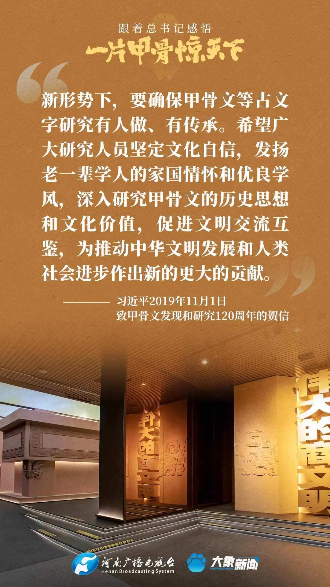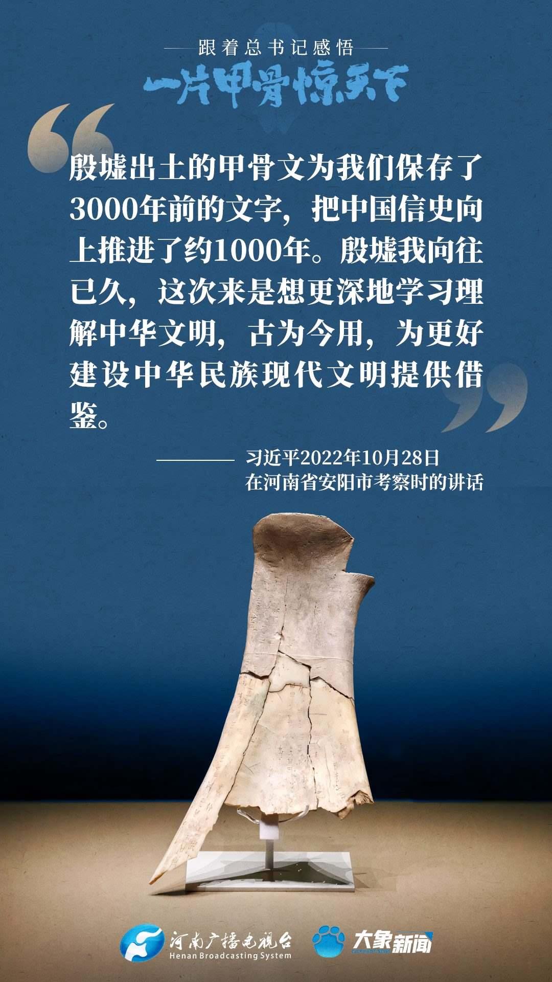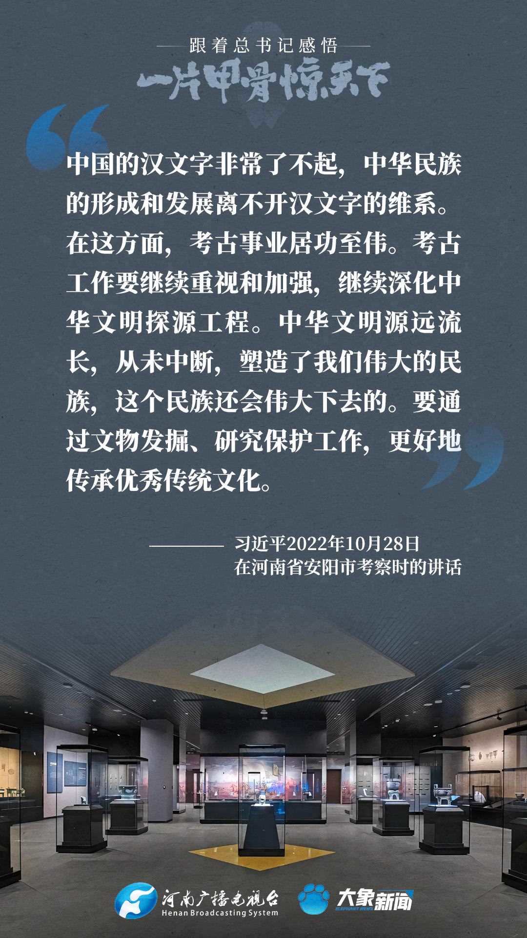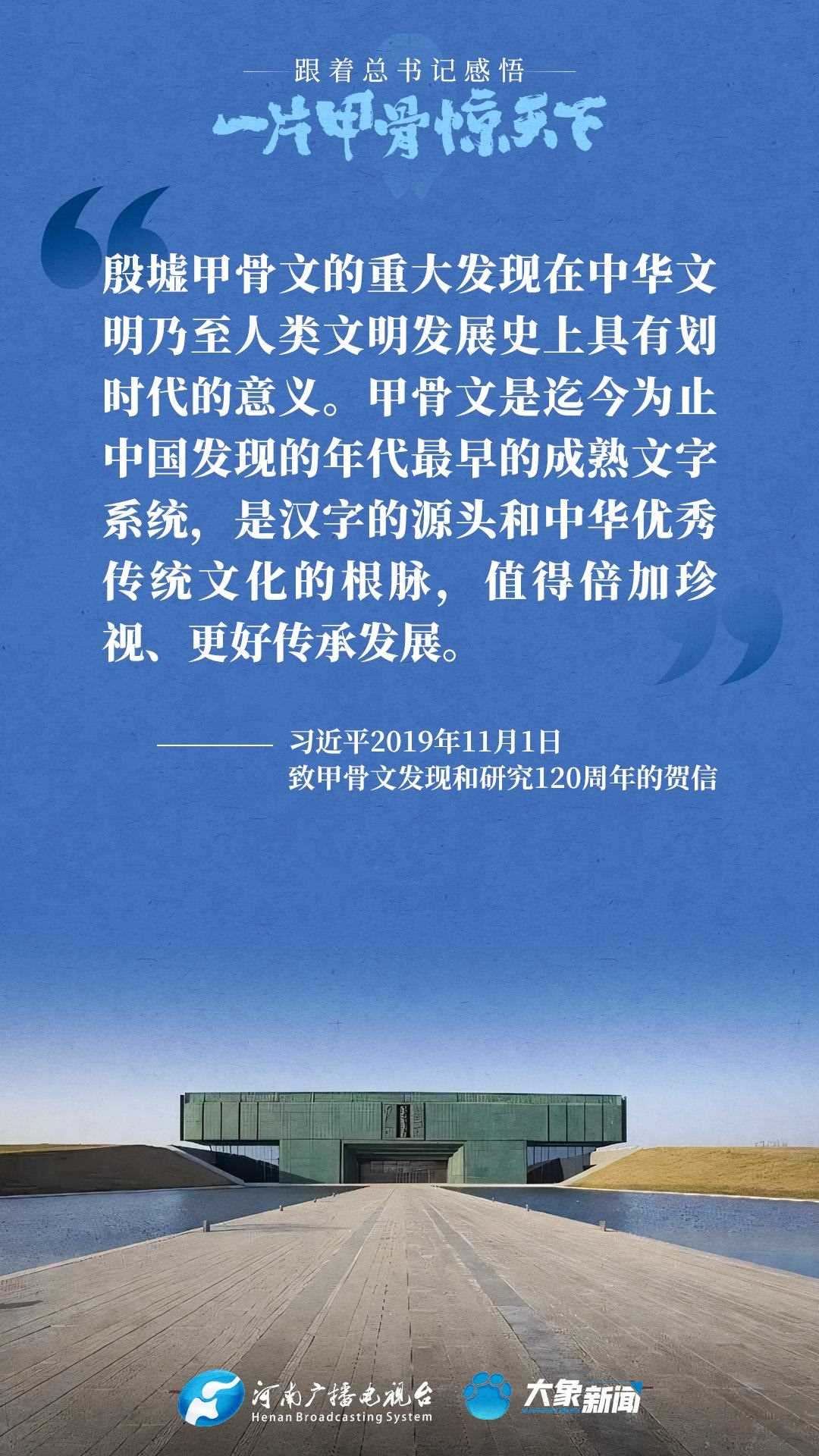 黨的十八大以來(lái),習(xí)近平總書(shū)記多次就殷墟和甲骨文保護(hù)研究利用工作作出重要講話重要指示,為我們堅(jiān)定文化自信,傳承發(fā)展中華優(yōu)秀傳統(tǒng)文化提供了根本遵循。大象新聞邀您一起回顧、學(xué)習(xí)。