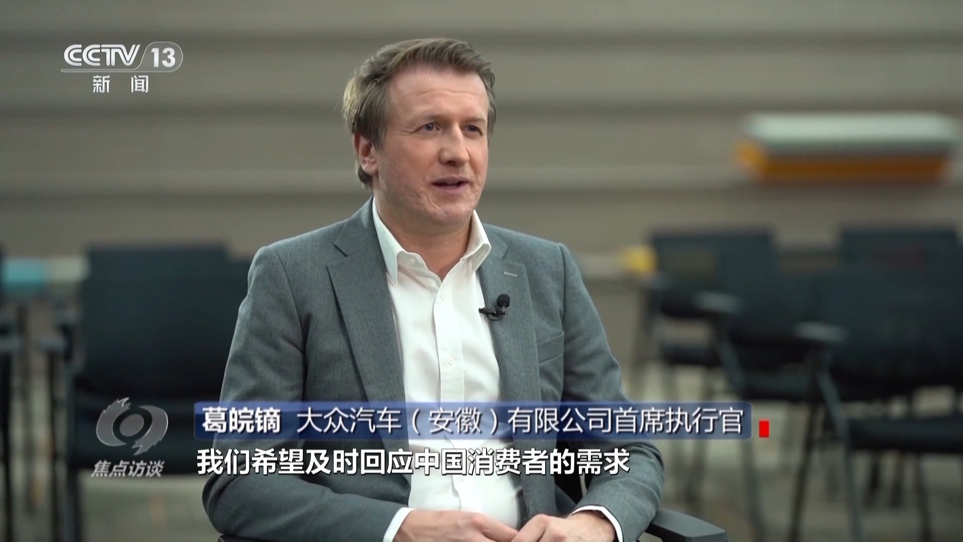 大眾汽車(安徽)有限公司首席執(zhí)行官 葛皖鏑:借助于這個(gè)研發(fā)中心,我們希望及時(shí)回應(yīng)中國(guó)消費(fèi)者的需求,這意味著一方面,我們要打造大眾汽車集團(tuán)首個(gè)專屬中國(guó)市場(chǎng)的電動(dòng)汽車平臺(tái);另外一方面,我們希望將其開發(fā)周期縮短約30%,這樣才能夠跟上中國(guó)市場(chǎng)的步伐。