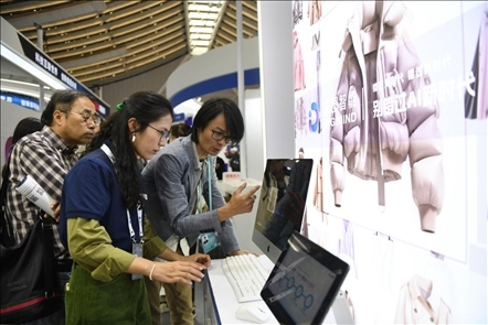 △ 2023年11月9日,“互聯(lián)網(wǎng)之光”博覽會上,人工智能服裝設(shè)計技術(shù)吸引參觀者駐足體驗。