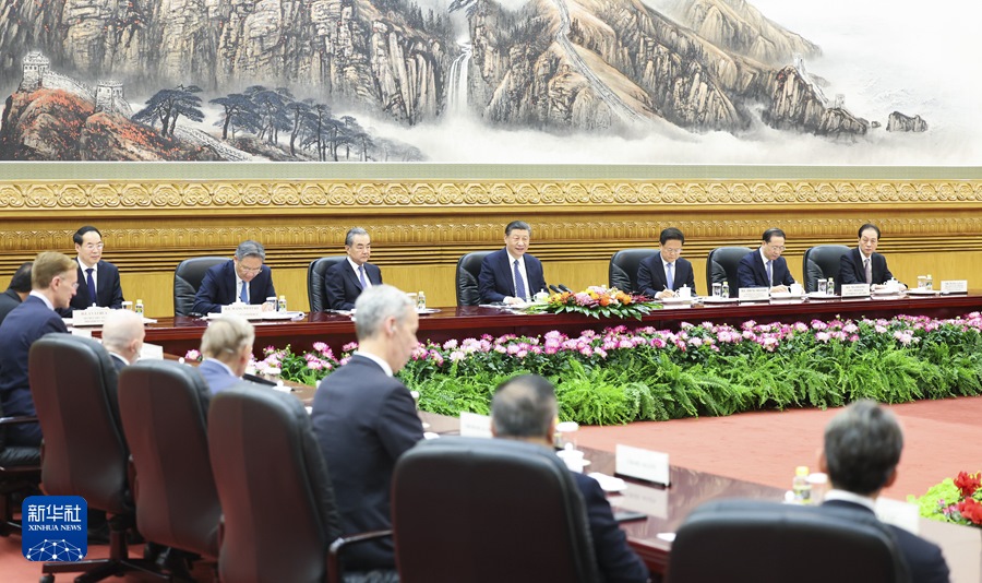 ??美中關(guān)系全國委員會董事會主席格林伯格、黑石集團董事長兼首席執(zhí)行官蘇世民、高通公司總裁兼首席執(zhí)行官安蒙、哈佛大學肯尼迪政府學院創(chuàng)始院長艾利森、美中貿(mào)易全國委員會會長艾倫等美方代表在發(fā)言中感謝習近平主席撥冗會見。他們表示,過去幾十年來,中國實現(xiàn)了非凡經(jīng)濟增長和轉(zhuǎn)型,體現(xiàn)了強大韌性和活力。在習近平主席卓越領(lǐng)導下,中國致力于發(fā)展新質(zhì)生產(chǎn)力,實現(xiàn)更可持續(xù)的高質(zhì)量發(fā)展。中國人民的發(fā)展權(quán)利應該得到尊重。相信中國將實現(xiàn)自身發(fā)展目標,促進世界經(jīng)濟發(fā)展和融合。一個強大、繁榮的中國是世界的正能量。美中經(jīng)濟關(guān)系緊密依存,兩國唯有和平共處,才能實現(xiàn)各自發(fā)展繁榮?!靶尬舻椎孪葳濉辈⒎潜厝弧C绹髽I(yè)贊賞中方近期出臺的一系列進一步改革開放的重要舉措,看好中國經(jīng)濟發(fā)展前景,將堅定不移繼續(xù)深耕中國,同中國發(fā)展長期緊密的合作關(guān)系。習近平主席同拜登總統(tǒng)去年11月在舊金山成功會晤,提振了美國各界和世界對美中關(guān)系未來的預期和信心。美國工商界和戰(zhàn)略學術(shù)界支持美中雙方加強各層級交往交流,增進相互理解、信任與合作,攜手應對全球性挑戰(zhàn),推動建立穩(wěn)定、可持續(xù)、富有成效的美中關(guān)系。