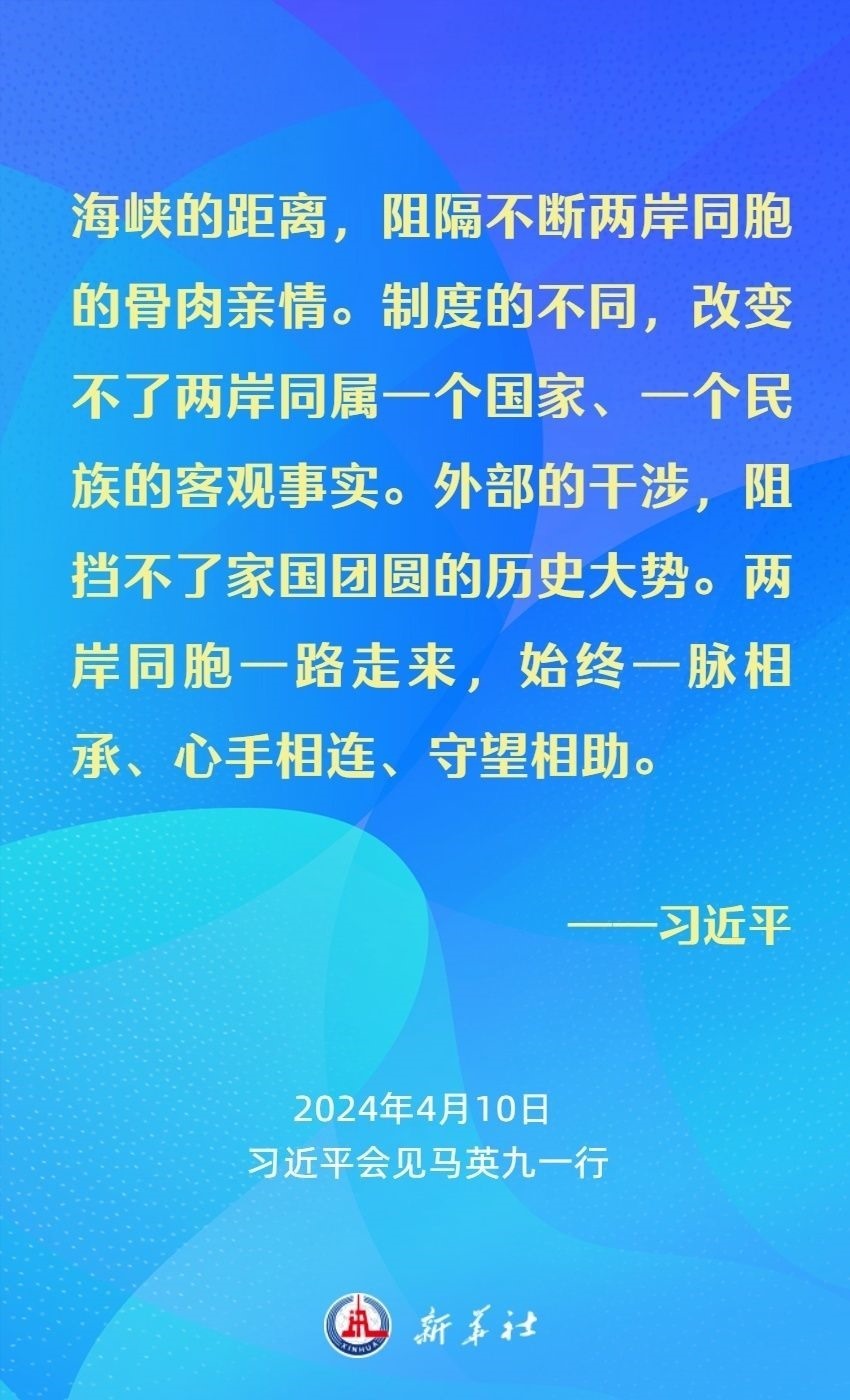習(xí)近平強調(diào),兩岸同胞有共同的血脈、共同的文化、共同的歷史,更重要的是我們對民族有共同的責(zé)任、對未來有共同的期盼。我們要從中華民族整體利益和長遠發(fā)展來把握兩岸關(guān)系大局。