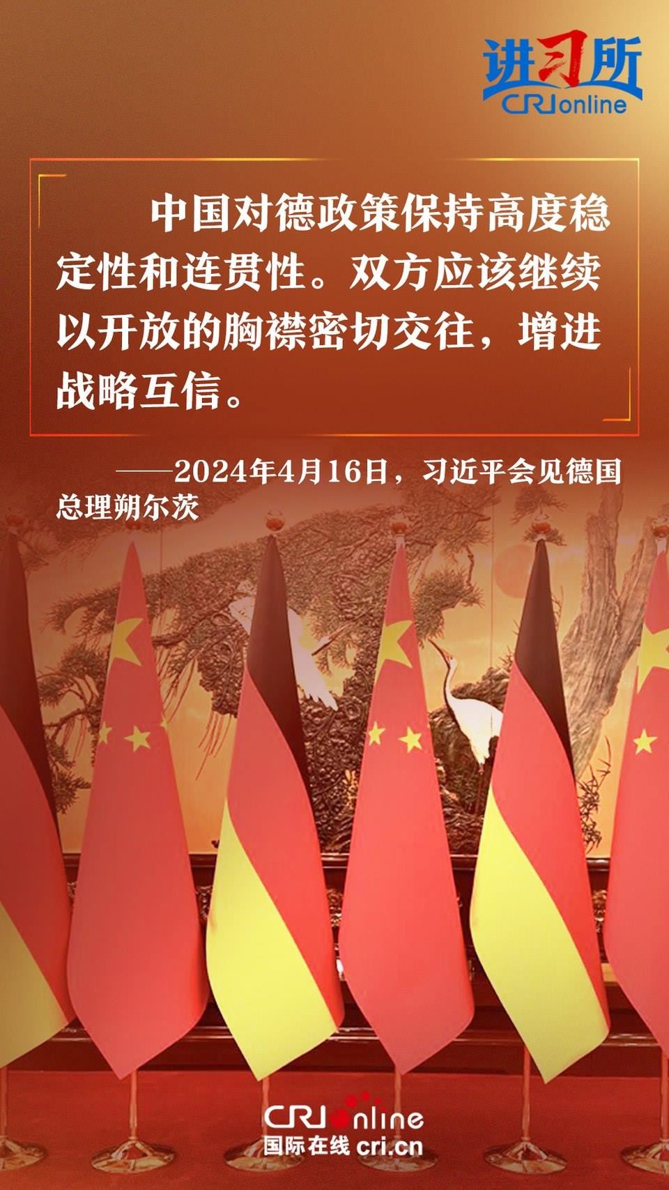 4月16日上午,中國(guó)國(guó)家主席習(xí)近平在北京釣魚臺(tái)國(guó)賓館會(huì)見(jiàn)了德國(guó)總理朔爾茨。習(xí)近平指出,中德合作對(duì)雙方有利,對(duì)世界有利。世界越是動(dòng)蕩,雙方越要提升兩國(guó)關(guān)系的韌性和活力。中德是世界第二、第三大經(jīng)濟(jì)體,鞏固和發(fā)展中德關(guān)系的意義超越雙邊關(guān)系范疇,對(duì)亞歐大陸乃至整個(gè)世界都有重要影響。兩國(guó)要從長(zhǎng)遠(yuǎn)和戰(zhàn)略角度看待和發(fā)展雙邊關(guān)系,攜手為世界注入更多穩(wěn)定性和確定性。
