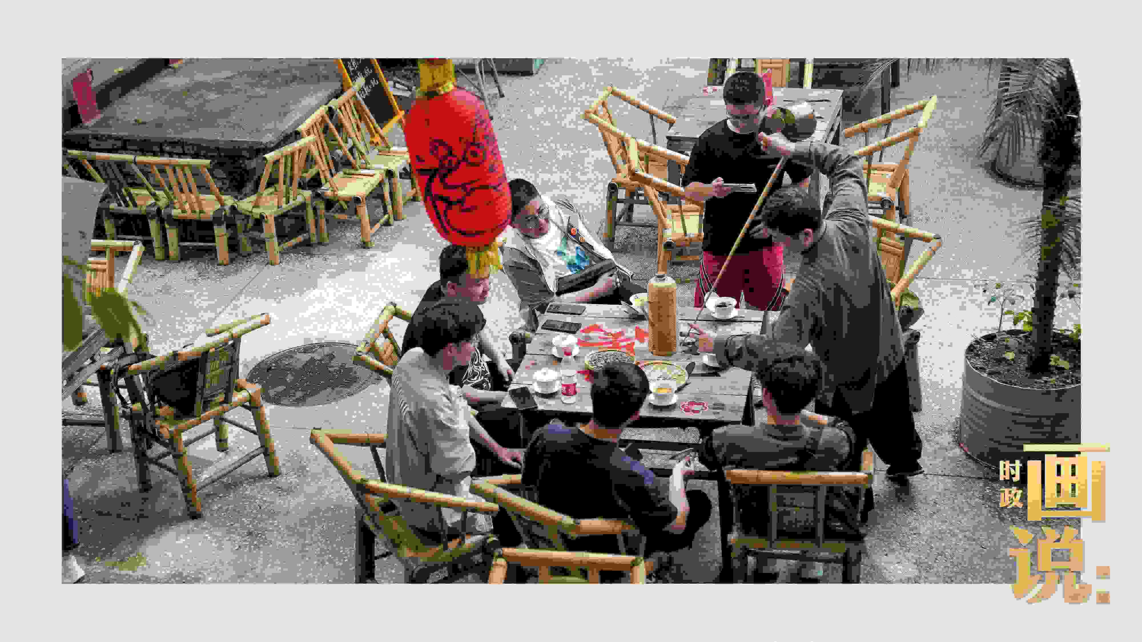 △山城巷的露天茶座中,傳統(tǒng)川劇變臉演出引得茶客們連連叫好。