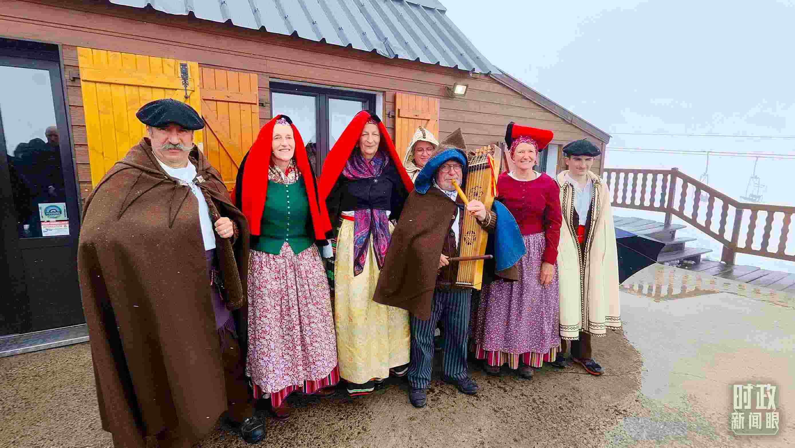 馬克龍夫婦在圖爾馬萊山口“牧羊人驛站”迎接習(xí)主席夫婦,共同欣賞當?shù)卮迕癖硌莸木哂袧庥裟戏L(fēng)情的牧羊人之舞,并同他們親切合影。