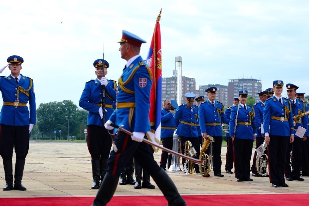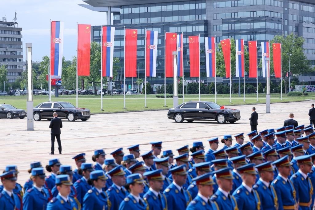 當(dāng)?shù)貢r間5月8日,國家主席習(xí)近平在貝爾格萊德出席塞爾維亞總統(tǒng)武契奇舉行的隆重盛大歡迎儀式。歡迎儀式在塞爾維亞大廈南廣場舉行。兩國元首共同登上檢閱臺,軍樂團奏響中塞兩國國歌,鳴10響禮炮。習(xí)近平在武契奇陪同下檢閱儀仗隊。