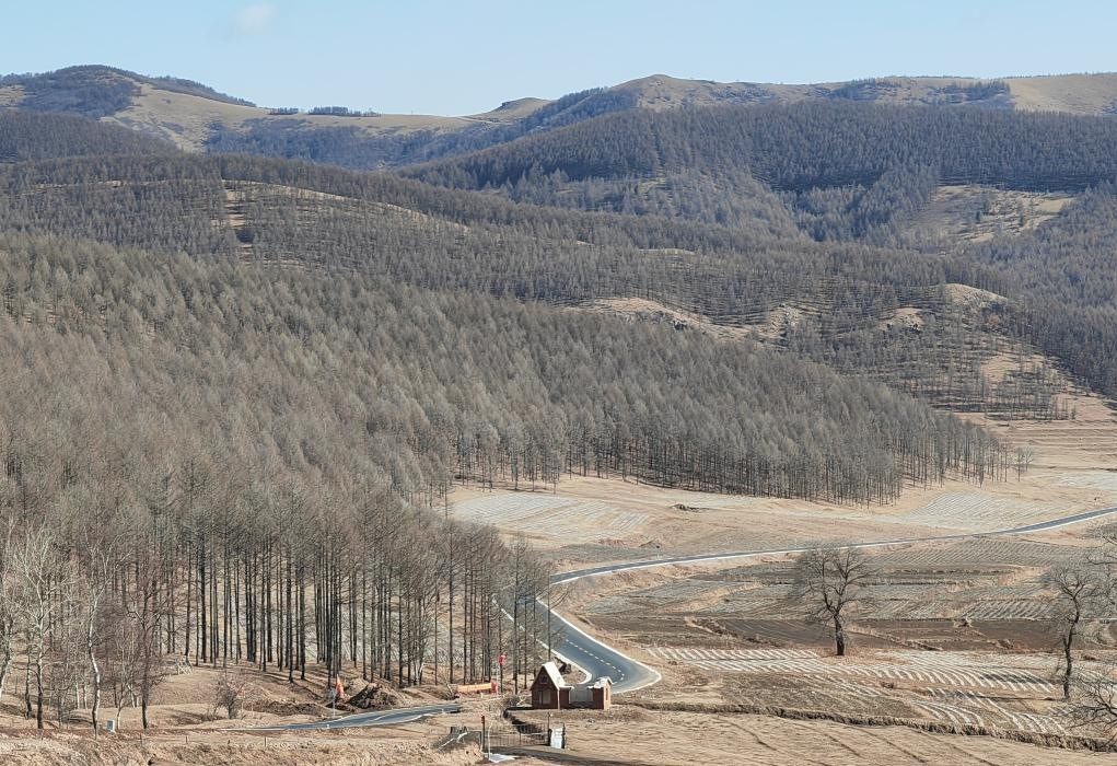 2023年10月,一條新修的公路——縣道X186連接線連通了塞罕壩林場與馬鞍山林場,使兩地通行路程縮短了100多公里。山上樹與樹相接,山下路與路相通,此前相近但無坦途的兩個林場,真正牽起手來,匯聚起擴(kuò)綠、興綠、護(hù)綠的新力量。