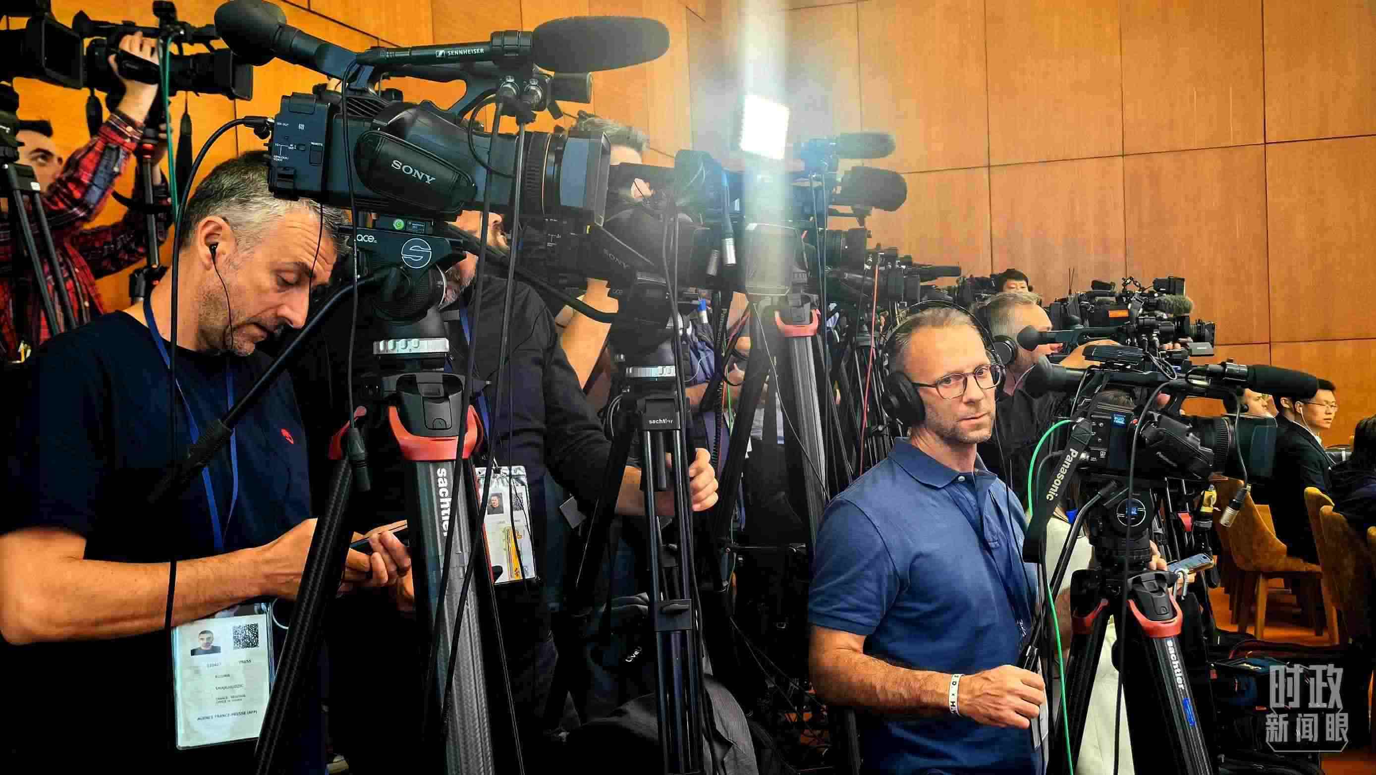 △習(xí)主席同武契奇總統(tǒng)會談后共同會見記者,會見現(xiàn)場記者云集。(總臺央視記者荊偉拍攝)