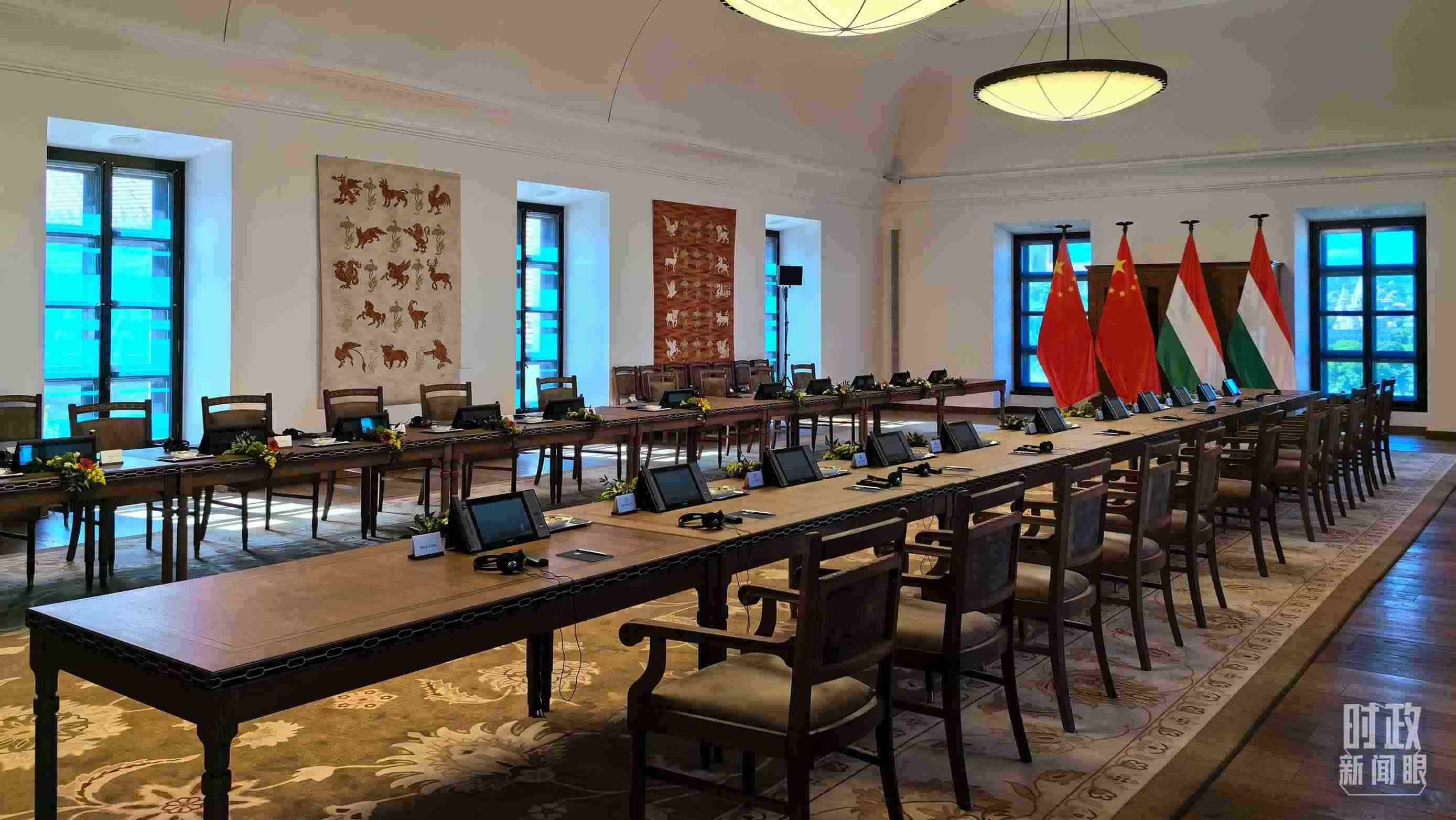 △5月9日,習(xí)主席同匈牙利總理歐爾班在這里舉行會(huì)談。這是會(huì)談開(kāi)始前的現(xiàn)場(chǎng)。(總臺(tái)央視記者陸泓宇拍攝)