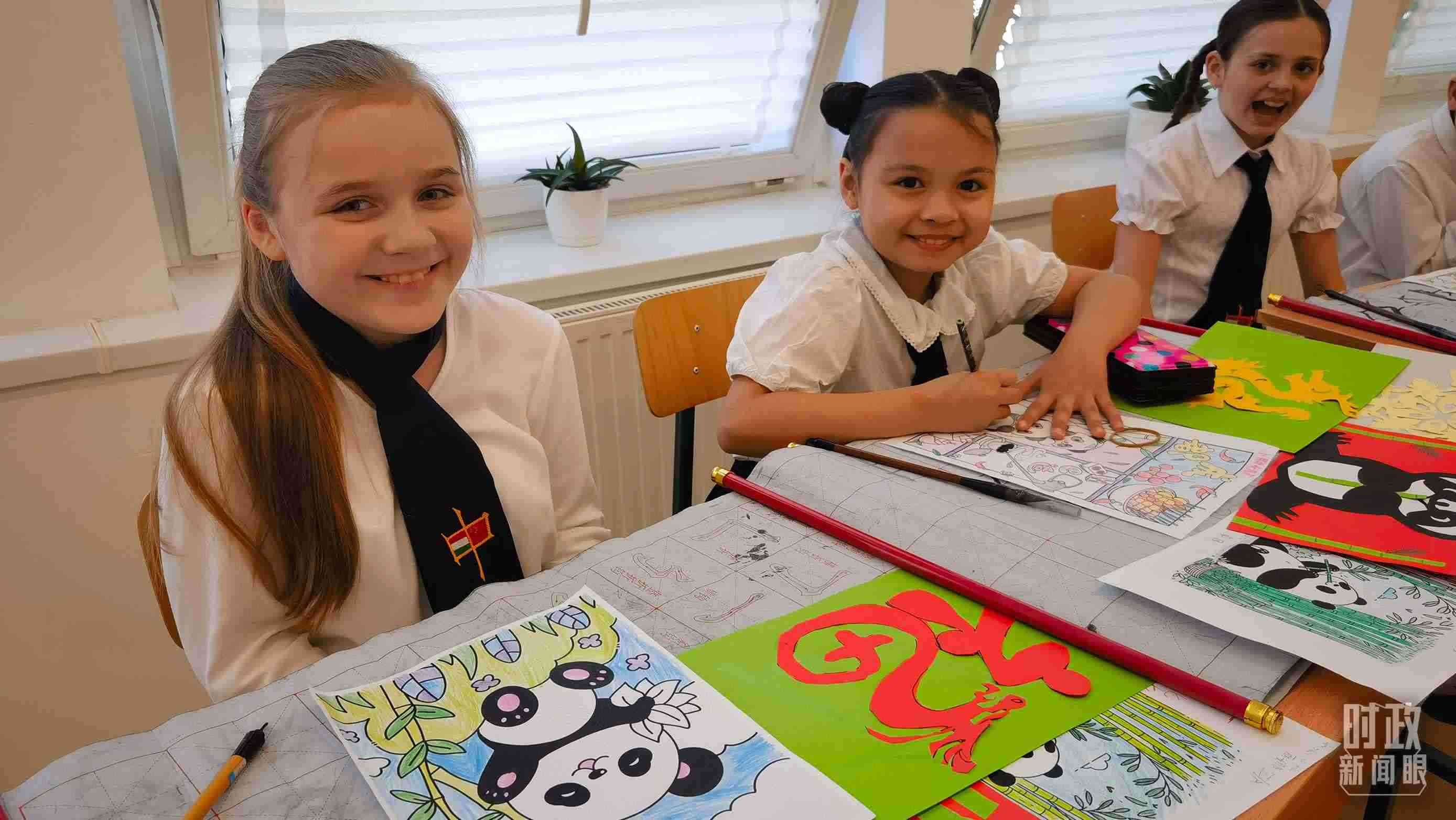 △匈中雙語學(xué)校中國傳統(tǒng)文化課堂上的孩子們。(總臺央視記者凌楓拍攝)