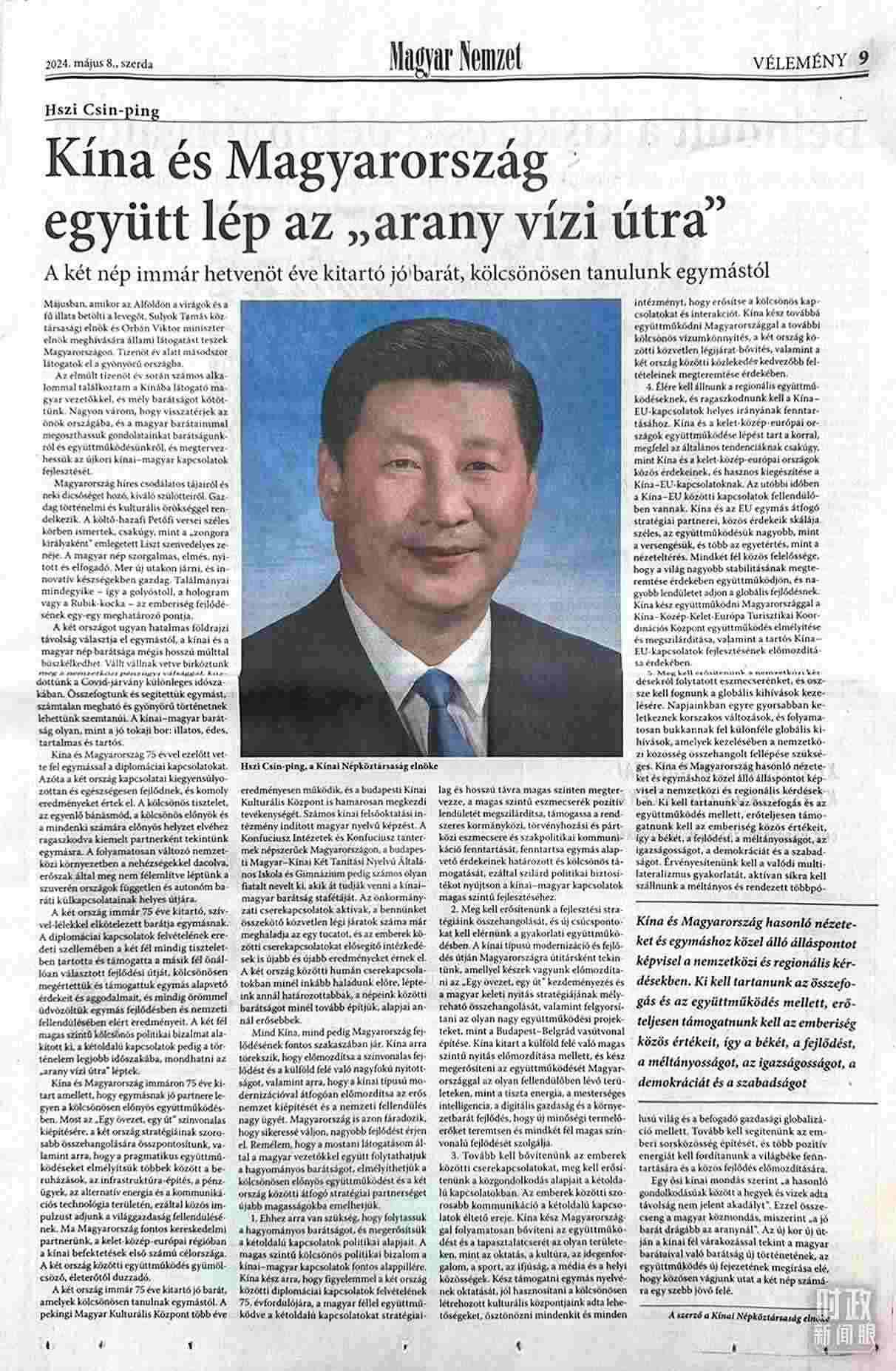 △習(xí)主席在匈牙利《匈牙利民族報(bào)》發(fā)表的署名文章。(總臺記者沃龍拍攝)