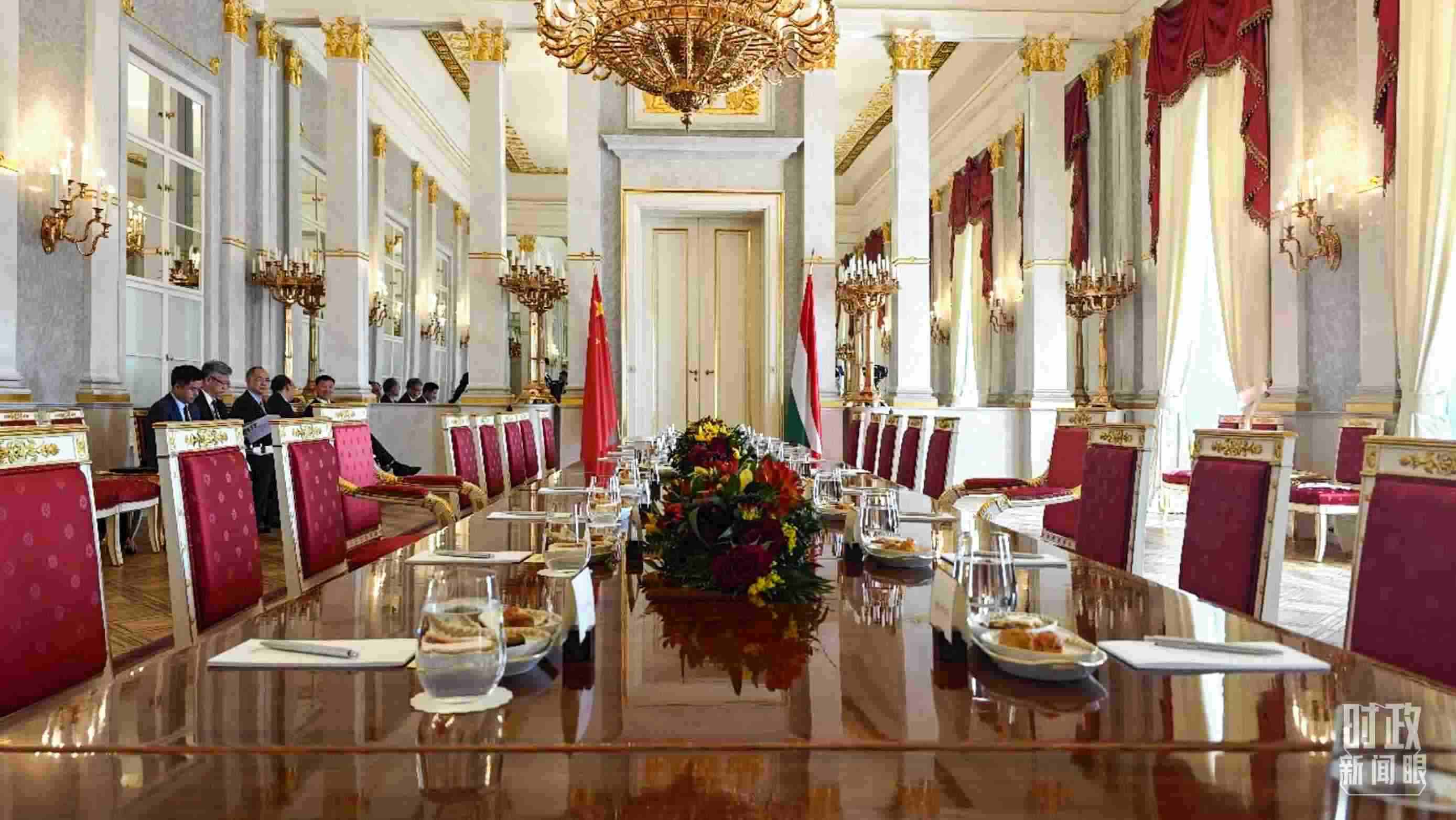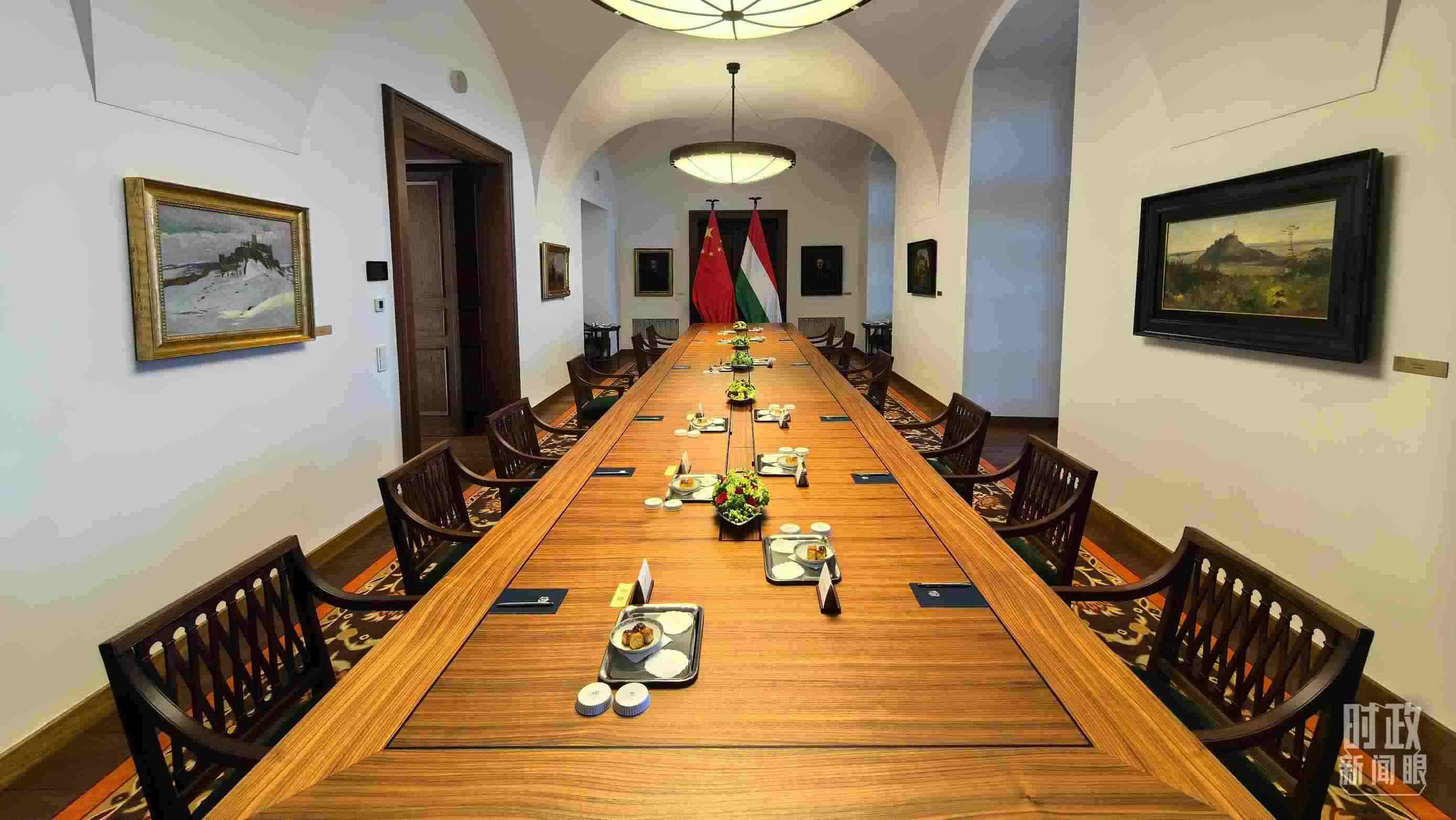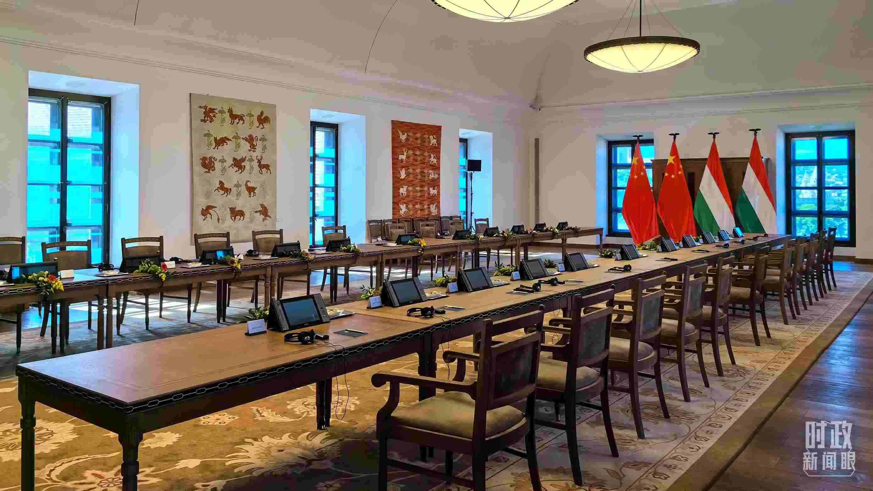△習(xí)主席和歐爾班總理在這里舉行大范圍會談。這是會談開始前的現(xiàn)場。(總臺央視記者陸泓宇拍攝)