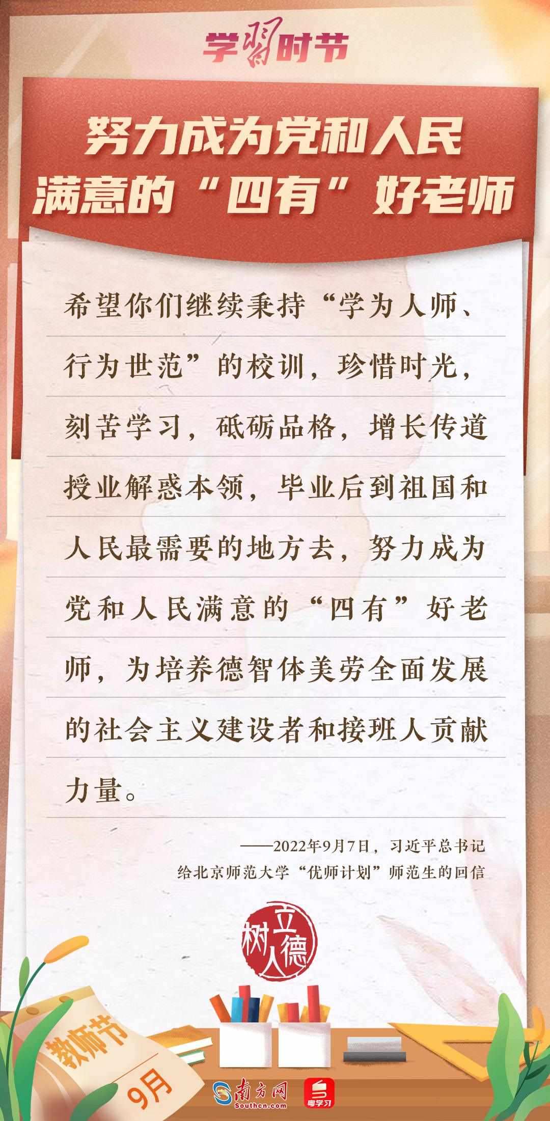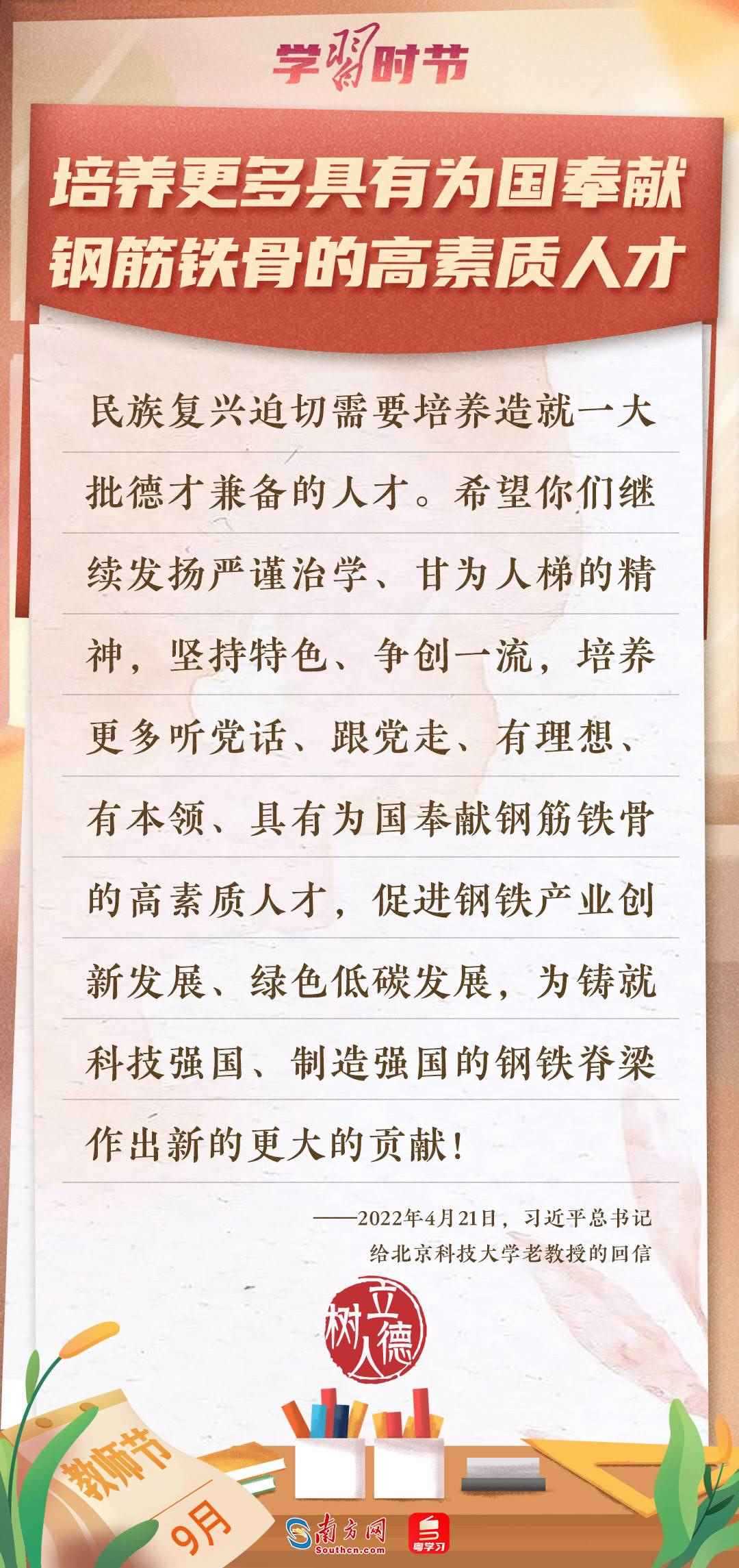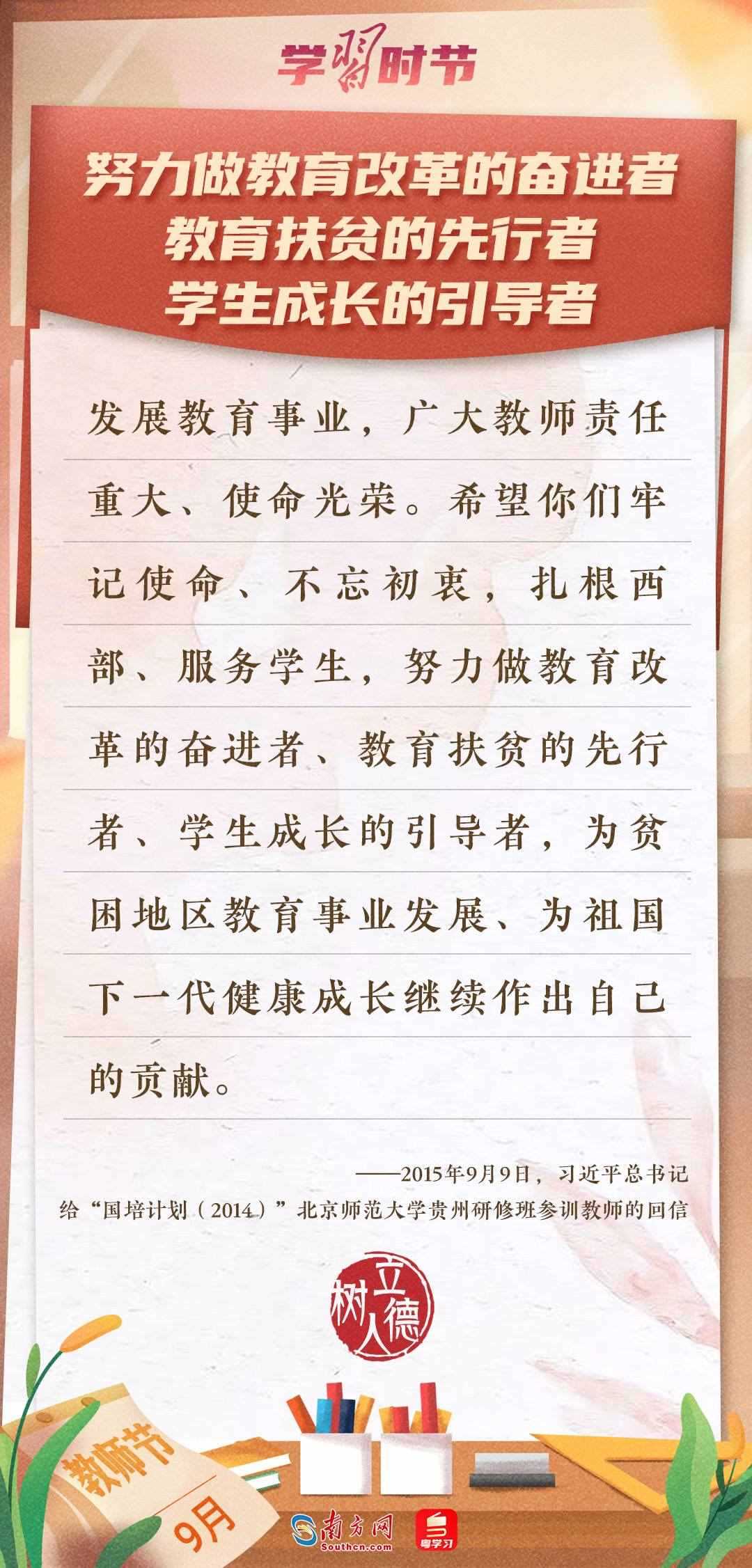 “百年大計(jì),教育為本。教育大計(jì),教師為本。”黨的十八大以來(lái),習(xí)近平總書(shū)記多次以書(shū)信形式向教師群體和教育工作者表達(dá)囑托與期望,諄諄話語(yǔ),催人奮進(jìn)。在第四十個(gè)教師節(jié)到來(lái)之際,讓我們一起重溫總書(shū)記的諄諄寄語(yǔ)!