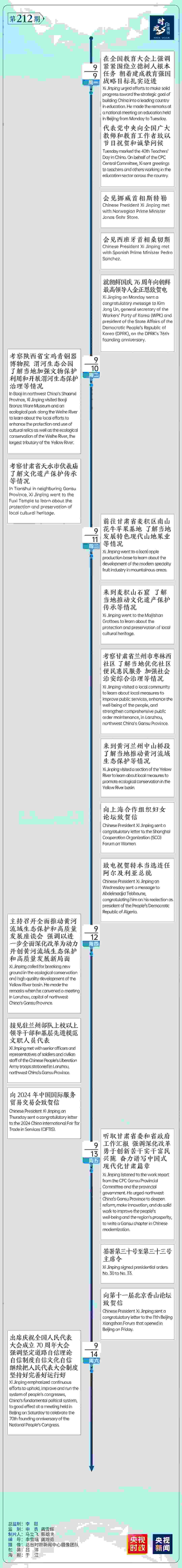 時(shí)政微周刊丨總書記的一周(9月9日—9月15日)