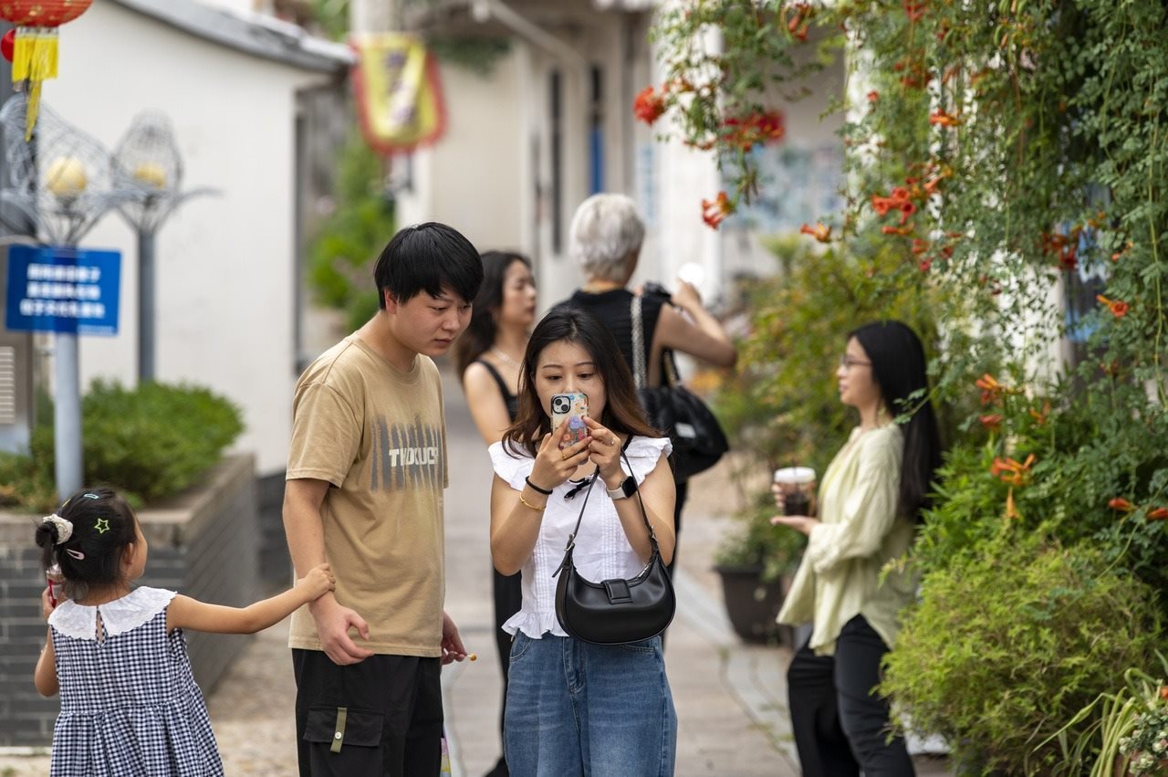 9月15日,李祖村的幽靜小巷里,各地游客在打卡拍照,休閑度假。拍友 胡肖飛 攝