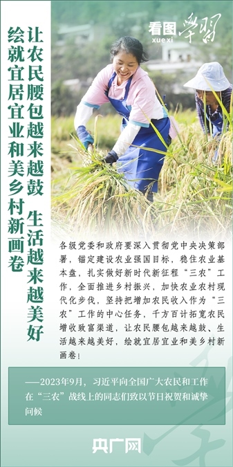 民族要復(fù)興,鄉(xiāng)村必振興。黨的十八大以來(lái),每到各地考察調(diào)研,習(xí)近平總書記總會(huì)去農(nóng)村看一看,走進(jìn)田間地頭,和農(nóng)民拉拉家常??倳洀?qiáng)調(diào),“建設(shè)宜居宜業(yè)和美鄉(xiāng)村是農(nóng)業(yè)強(qiáng)國(guó)的應(yīng)有之義”,“要讓農(nóng)民腰包越來(lái)越鼓、生活越來(lái)越美好”。