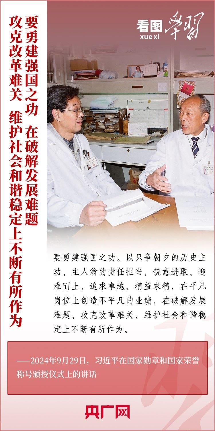 9月29日,中華人民共和國(guó)國(guó)家勛章和國(guó)家榮譽(yù)稱號(hào)頒授儀式在北京舉行,習(xí)近平總書記向國(guó)家勛章和國(guó)家榮譽(yù)稱號(hào)獲得者頒授勛章獎(jiǎng)?wù)虏l(fā)表重要講話??倳洀?qiáng)調(diào),全黨全國(guó)各族人民要以英雄模范為榜樣,團(tuán)結(jié)奮進(jìn)、砥礪前行,匯聚起共襄強(qiáng)國(guó)盛舉的磅礴力量。一起來(lái)學(xué)習(xí)!
