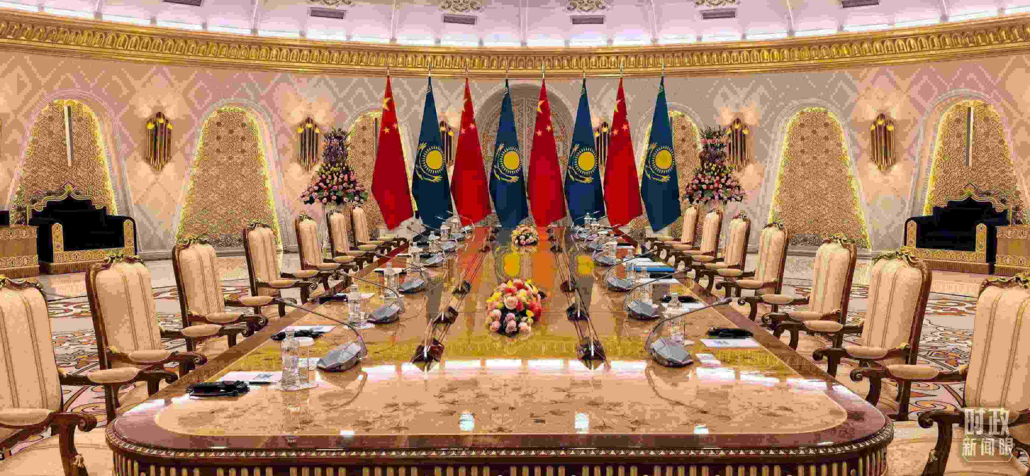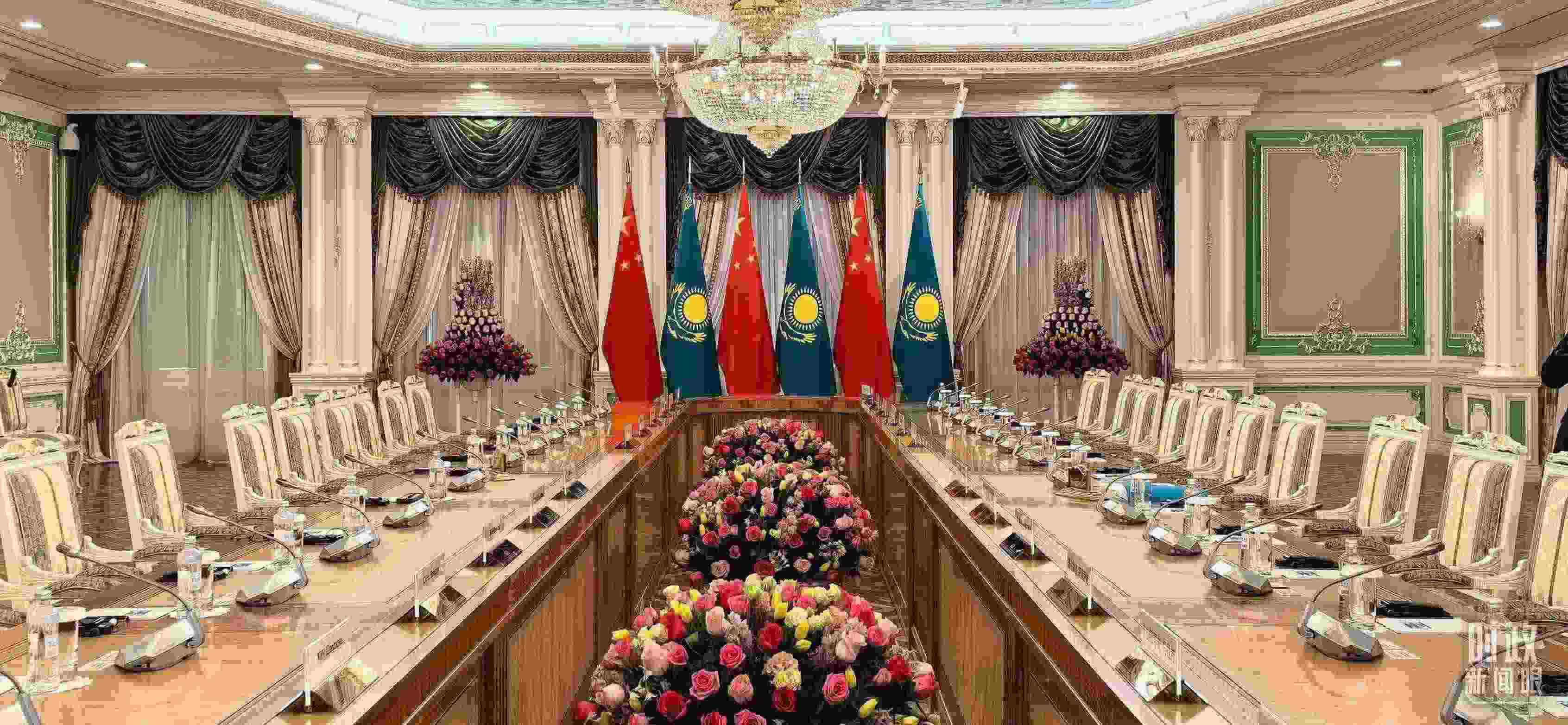 △中哈元首小范圍會(huì)談開(kāi)始前的現(xiàn)場(chǎng)。(總臺(tái)央視記者劉岳拍攝)