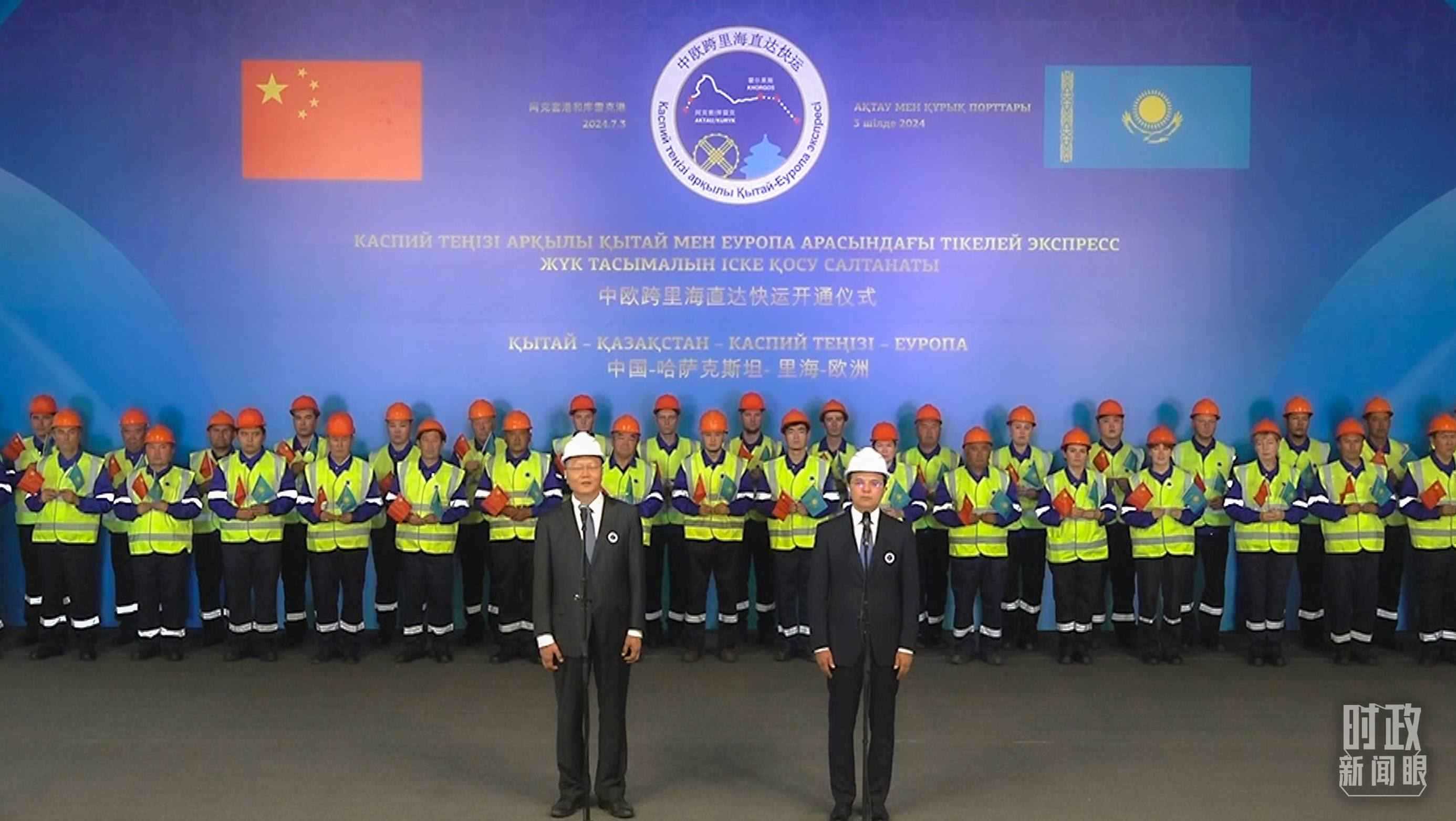△中歐跨里海直達(dá)快運(yùn)開(kāi)通儀式現(xiàn)場(chǎng)。