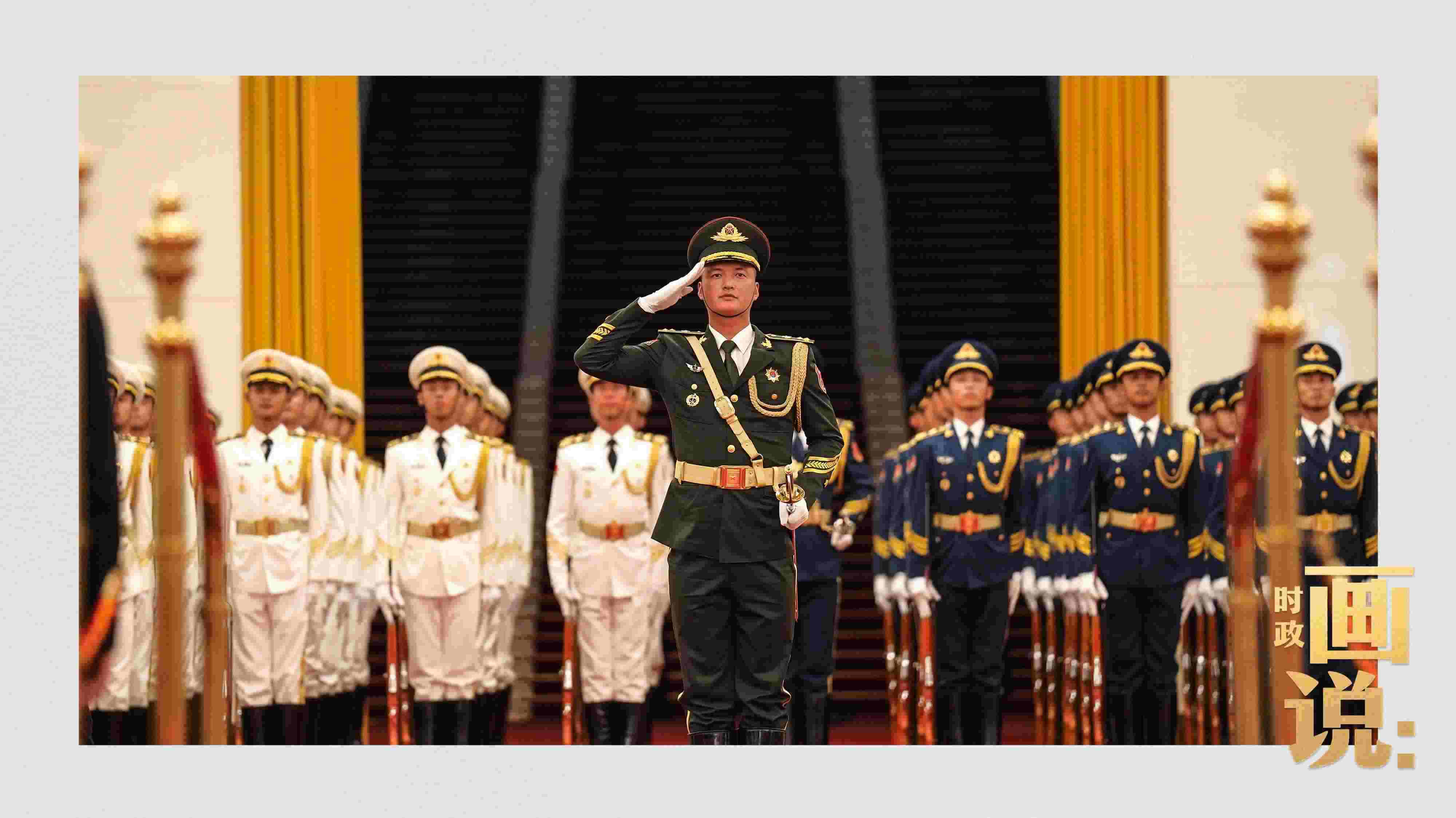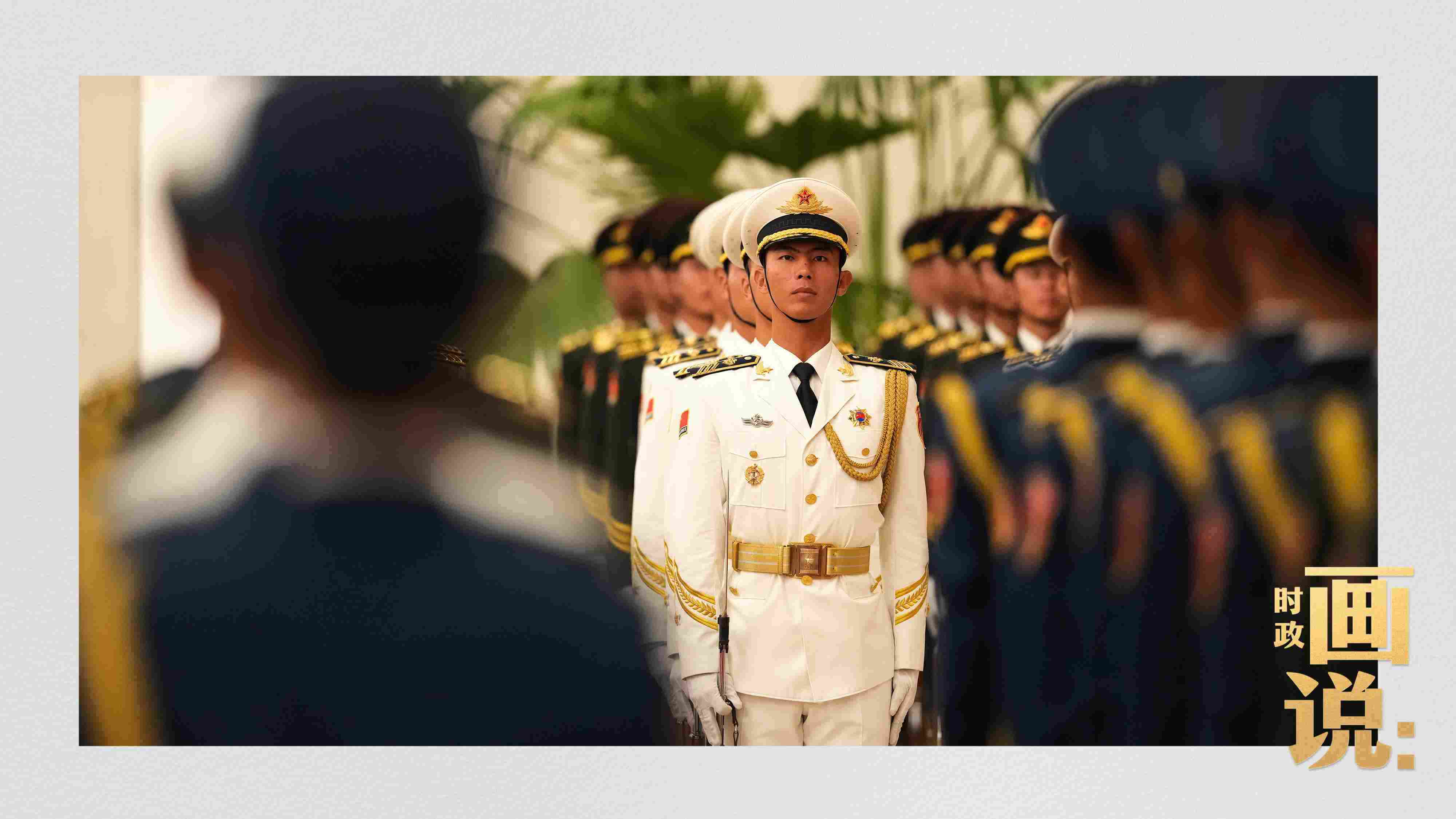 △南非總統(tǒng)拉馬福薩檢閱中國人民解放軍三軍儀仗隊。