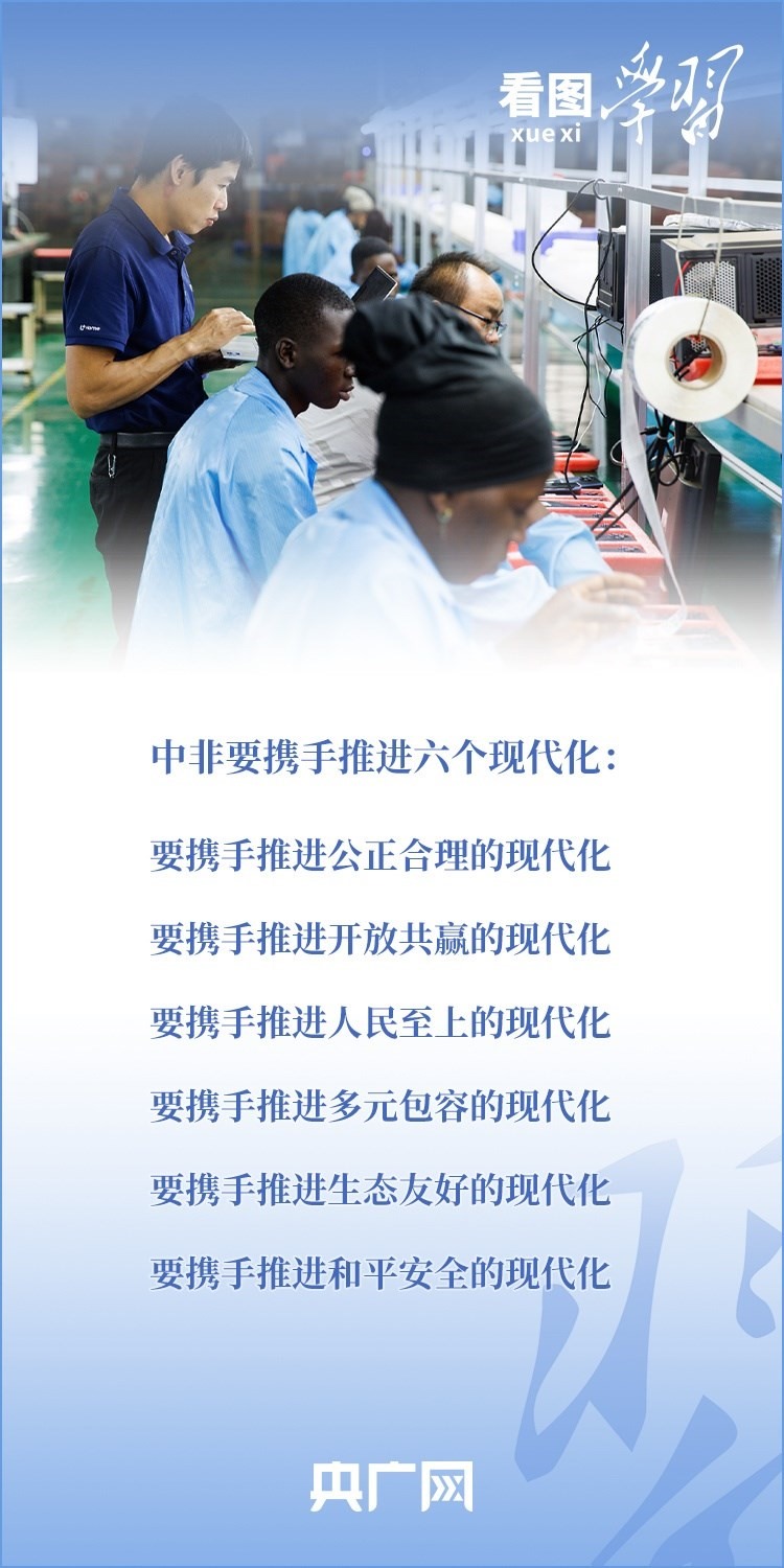“中非共逐現(xiàn)代化之夢,必將掀起全球南方現(xiàn)代化熱潮,譜寫構建人類命運共同體的嶄新篇章?!绷暯街飨硎荆蟹顷P系正處于歷史最好時期,中非將攜手推進六個現(xiàn)代化,并推動實施“十大伙伴行動”。一起來學習!