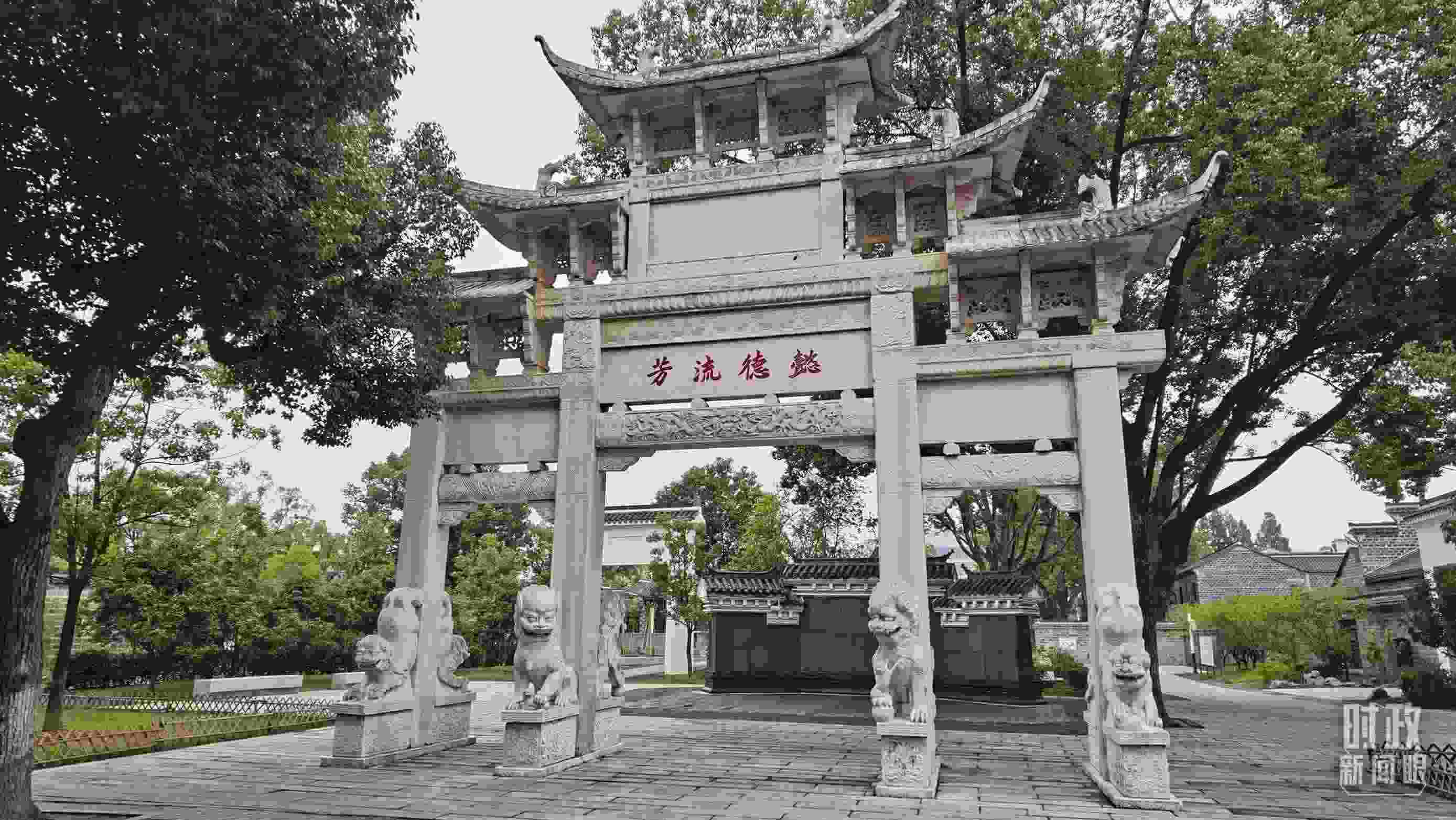 △六尺巷的“懿德流芳”和“禮讓”石牌坊。(總臺(tái)央視記者郭鴻、總臺(tái)央廣記者馬喆拍攝)