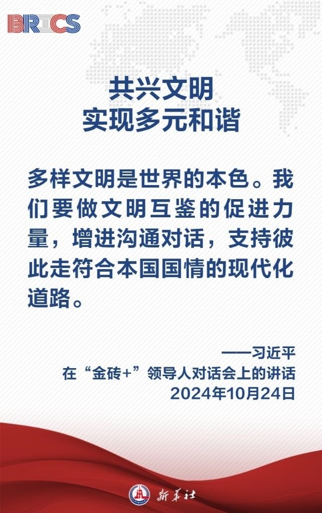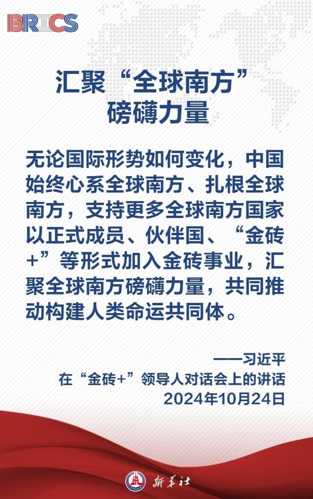 當?shù)貢r間10月24日上午,國家主席習近平在喀山會展中心出席“金磚+”領導人對話會并發(fā)表題為《匯聚“全球南方”磅礴力量 共同推動構建人類命運共同體》的重要講話,闡明中國主張——