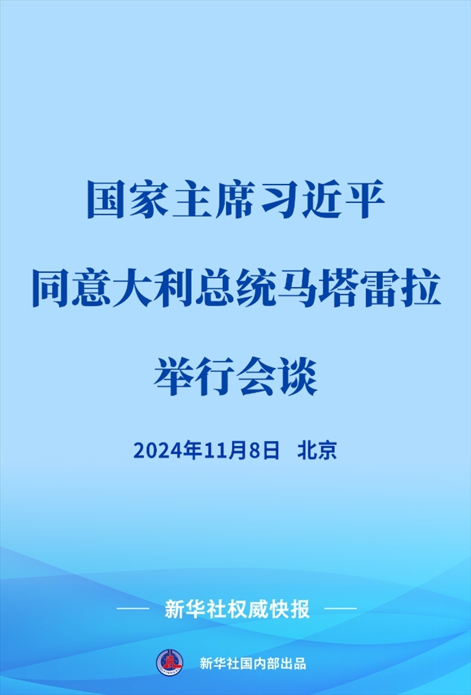 11月8日下午,國家主席習(xí)近平在北京人民大會堂同來華進行國事訪問的意大利總統(tǒng)馬塔雷拉舉行會談。