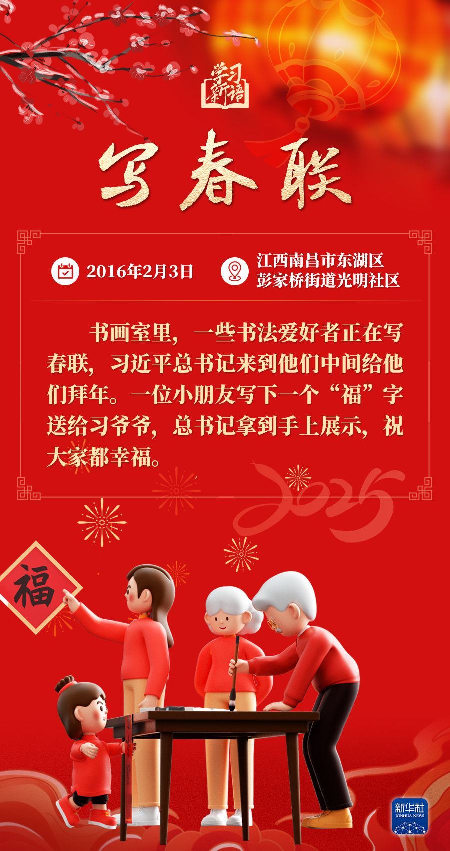 春節(jié)是中華民族的傳統(tǒng)節(jié)日。每當(dāng)春節(jié)來(lái)臨之際,習(xí)近平總書記都會(huì)走到群眾之中,送祝福、貼“福”字、賞民俗……和大家一起感受豐富多彩的年俗文化。