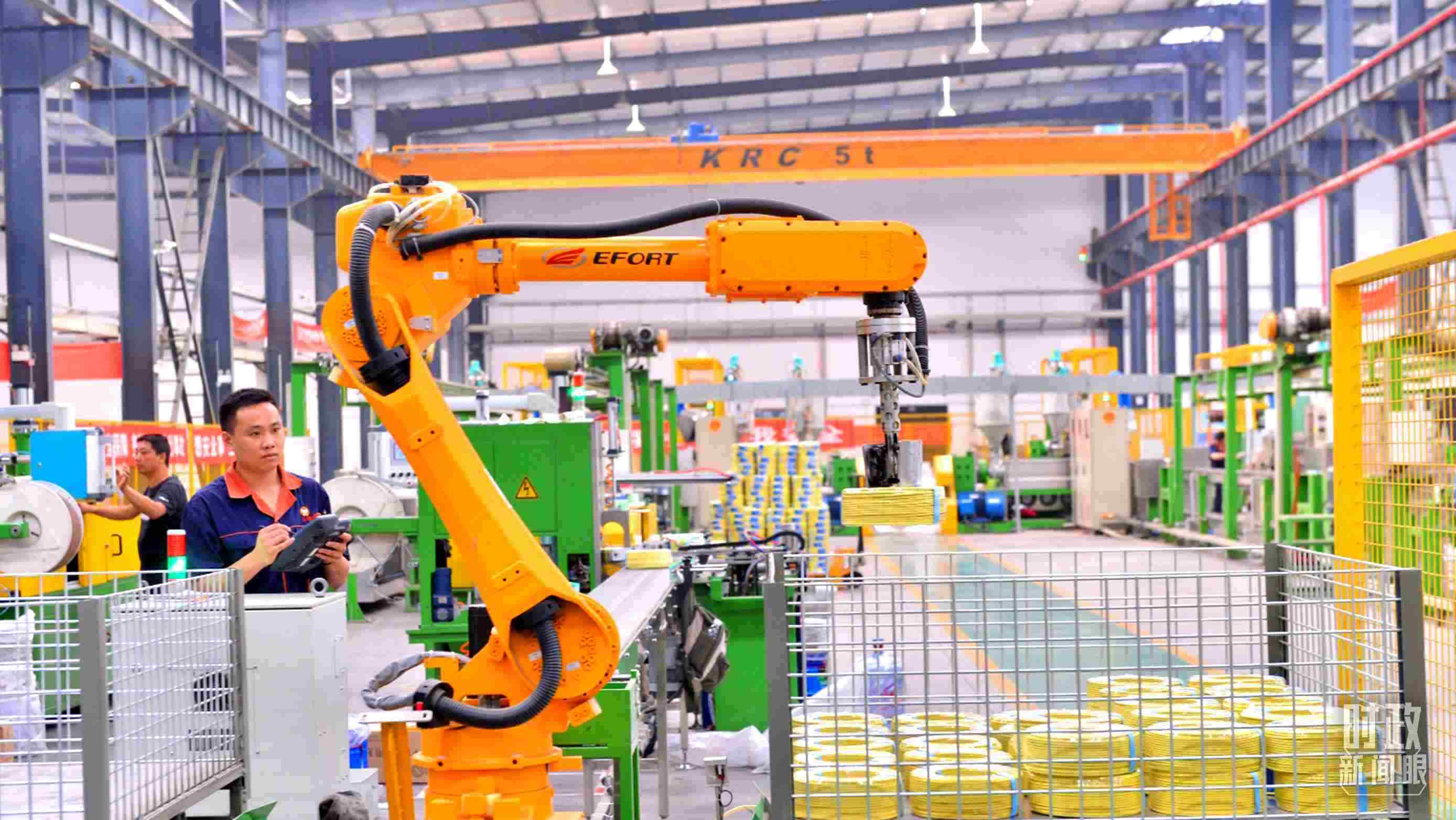 △貴州省貴陽市一家電線電纜企業(yè)的智能制造及智能倉儲(chǔ)一體化車間。(總臺(tái)記者張秀練拍攝)