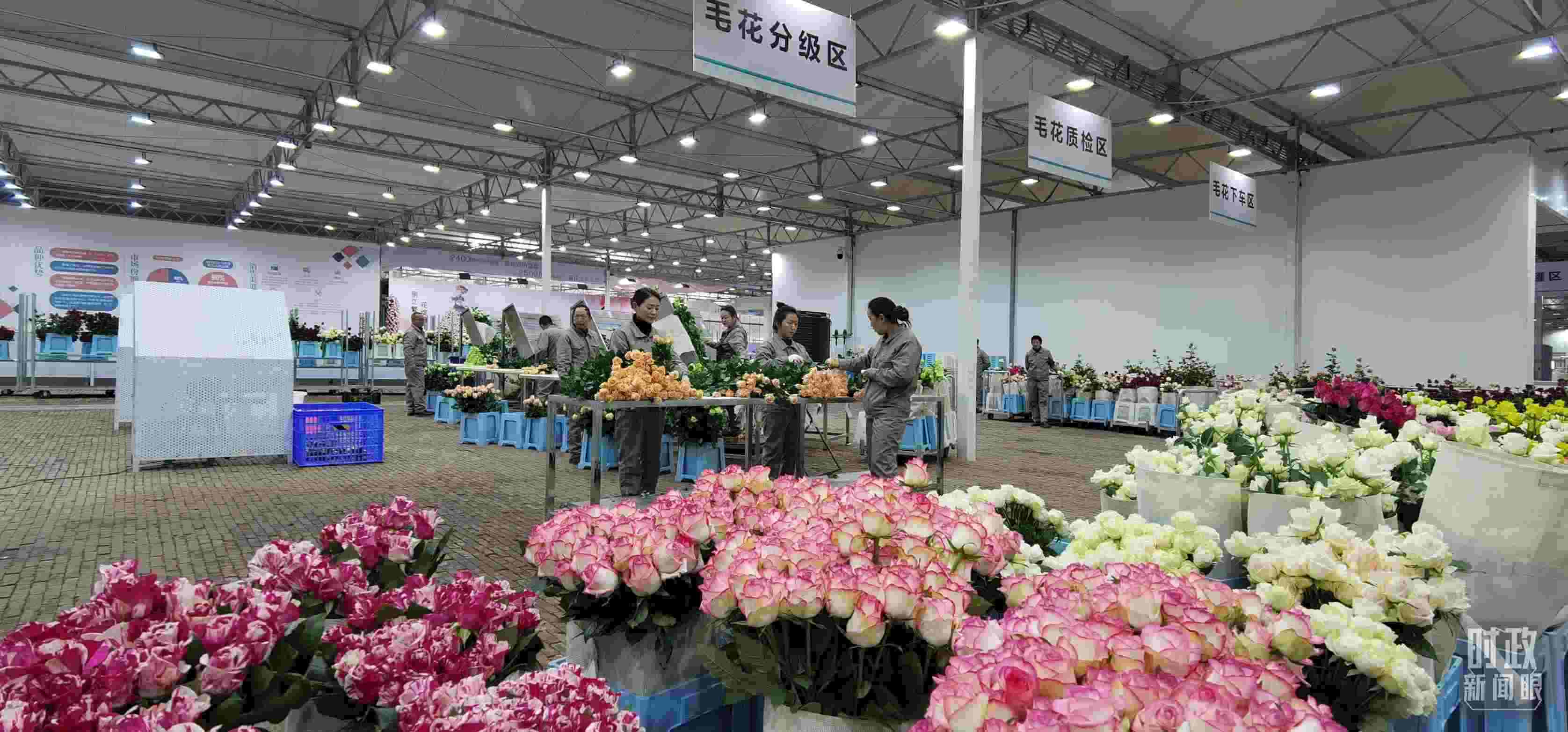 △麗江現(xiàn)代花卉產(chǎn)業(yè)園內,工人正在分類整理鮮花。(總臺央視記者郭鴻拍攝)