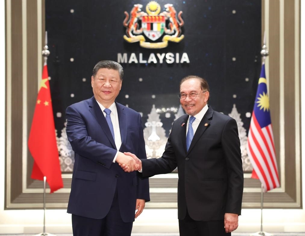 4月16日下午,習(xí)近平同馬來西亞總理安瓦爾在布特拉加亞總理官邸舉行會談。
