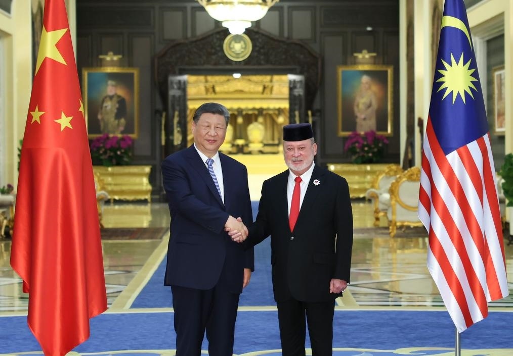 4月16日上午,易卜拉欣在馬來西亞國家王宮廣場為習(xí)近平舉行隆重歡迎儀式。