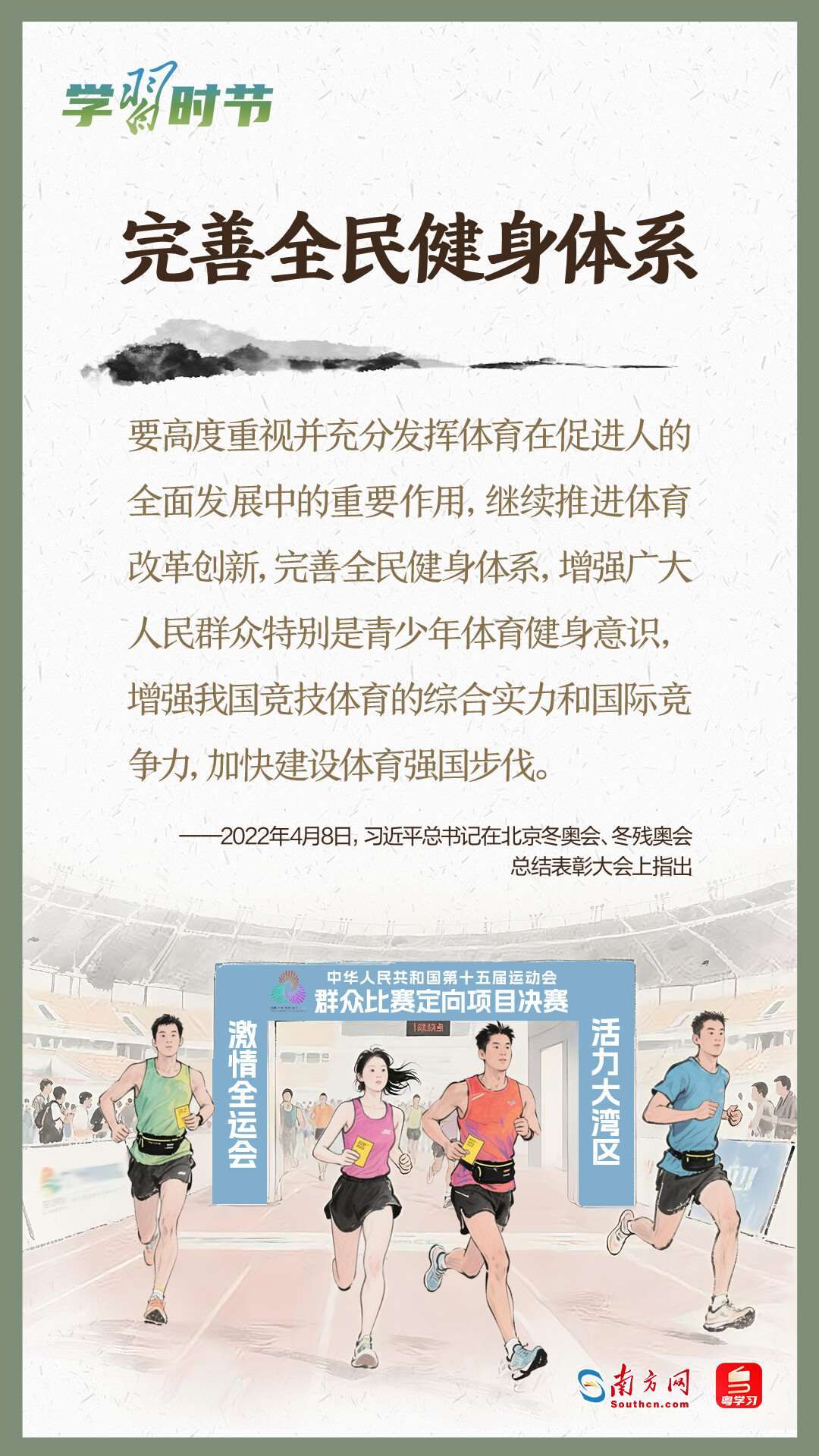 今年5月17日拉開(kāi)帷幕的第十一屆全民營(yíng)養(yǎng)周,以“吃動(dòng)平衡 健康體重 全民行動(dòng)”為主題,向全社會(huì)傳遞運(yùn)動(dòng)和飲食在健康生活中同等重要的理念。而今年11月至12月由粵港澳三地共同承辦的十五運(yùn)會(huì)和殘?zhí)貖W會(huì),充分發(fā)揮賽事的“全民性”,將群眾體育發(fā)展推向新高度。