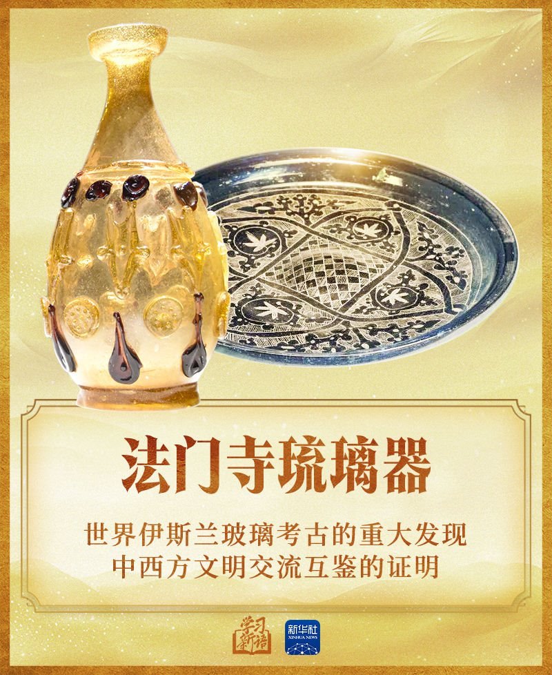 2014年3月,習(xí)近平主席在巴黎聯(lián)合國教科文組織總部發(fā)表演講時(shí),特別提到了1987年在陜西法門寺地宮中出土的20件精美的琉璃器,這是唐代傳入中國的東羅馬和伊斯蘭的琉璃器。他說:“我在欣賞這些域外文物時(shí),一直在思考一個(gè)問題,就是對待不同文明,不能只滿足于欣賞它們產(chǎn)生的精美物件,更應(yīng)該去領(lǐng)略其中包含的人文精神”。
