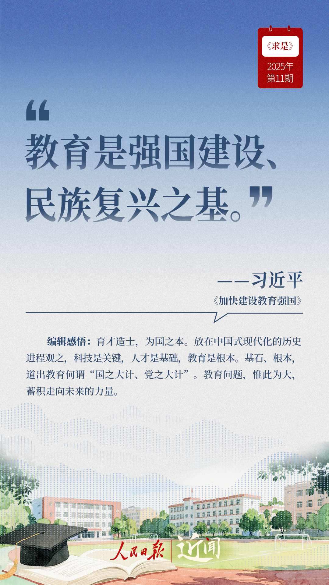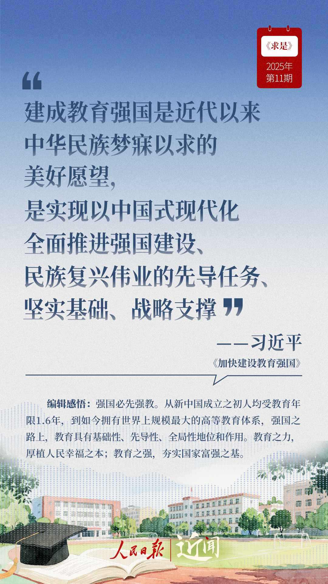 教育是國之大計、黨之大計。日前,《求是》雜志發(fā)表習(xí)近平總書記重要文章《加快建設(shè)教育強(qiáng)國》?!叭姘盐战逃恼螌傩浴⑷嗣駥傩?、戰(zhàn)略屬性”“讓教育改革發(fā)展成果更多更公平惠及全體人民”“讓教師享有崇高社會聲望、成為最受社會尊重的職業(yè)之一”……通過這些話,一起感悟習(xí)近平總書記對教育強(qiáng)國建設(shè)的謀劃與部署。