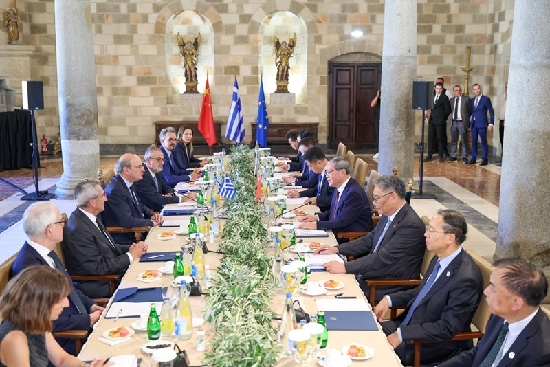 李強指出,中方愿同希方拉緊合作紐帶,更好發(fā)揮互補優(yōu)勢,高質量推進比雷埃夫斯港總規(guī)劃落地,推動兩國貿易更加優(yōu)化平衡發(fā)展,加強在清潔能源、輸變電、人工智能等領域合作,培育更多經濟新增長點。中方支持和鼓勵更多有實力的中國企業(yè)根據(jù)市場原則,積極推進對希臘投資。雙方要加強文明互鑒,密切旅游等人文交流,增進兩國人民友好。中歐之間有著廣泛的共同利益。當前全球單邊主義、保護主義愈演愈烈,中歐應共同發(fā)出倡導多邊主義和自由貿易的積極聲音,攜手維護經濟全球化和國際經貿秩序。希望希臘繼續(xù)為推進中歐關系發(fā)展發(fā)揮建設性作用。