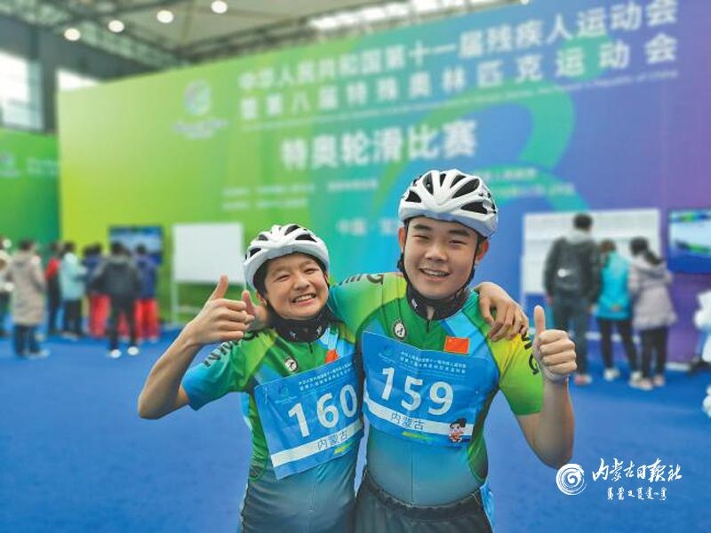 10月27日,特奧輪滑比賽16—20歲組男子2×200米接力比賽中,內(nèi)蒙古運(yùn)動員閆俊杰、趙鑫格獲得金牌。